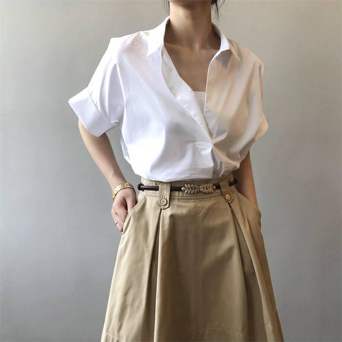 シアースリーブ ドッキングシャツ ボウタイシャツブラウス