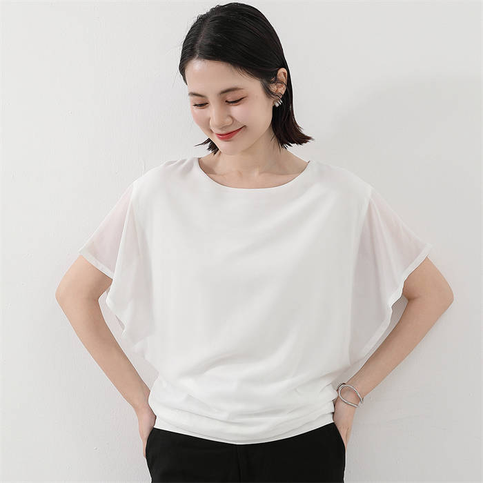シアースリーブ ドッキングシャツ ボウタイシャツブラウス