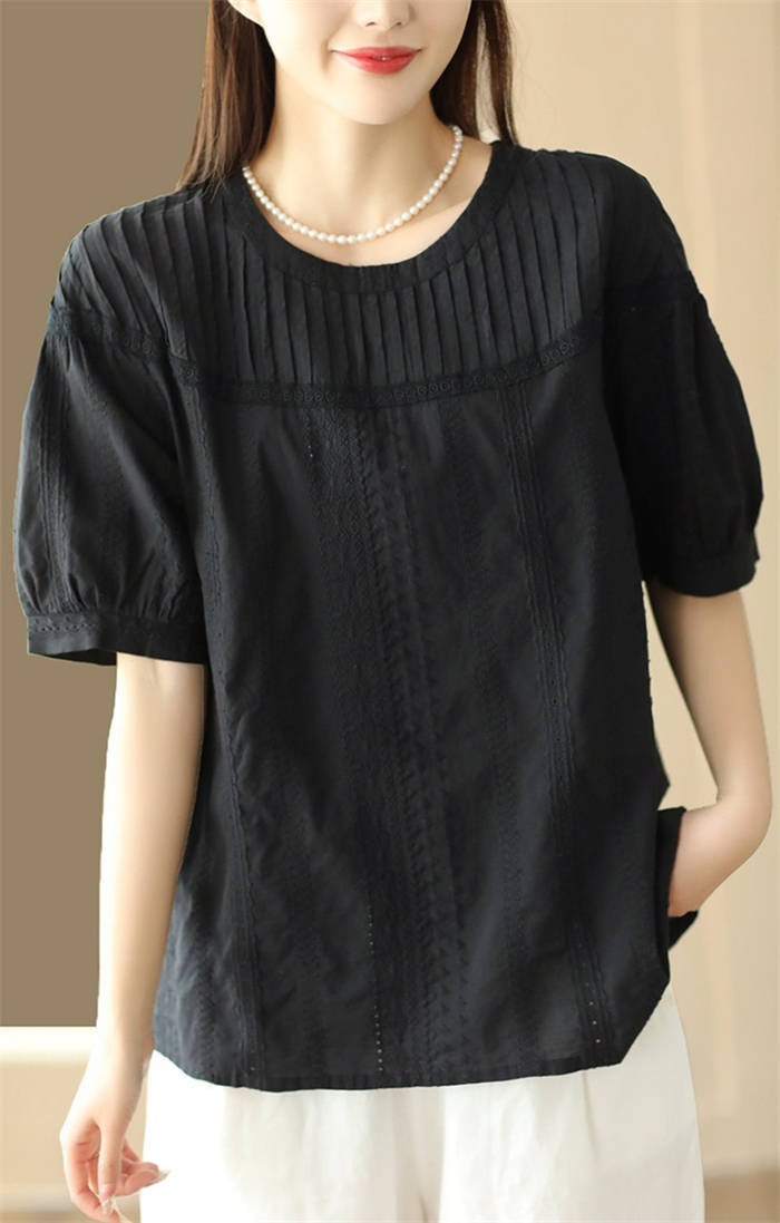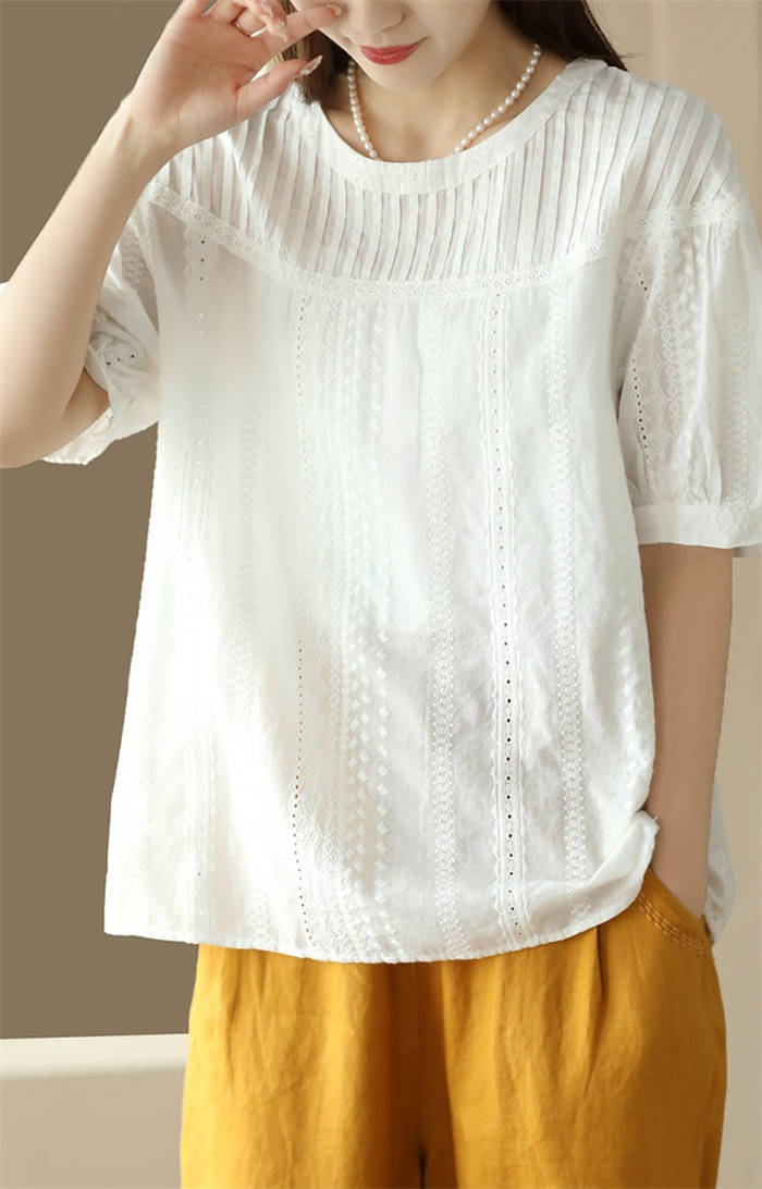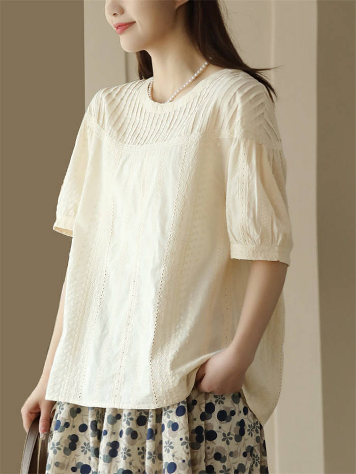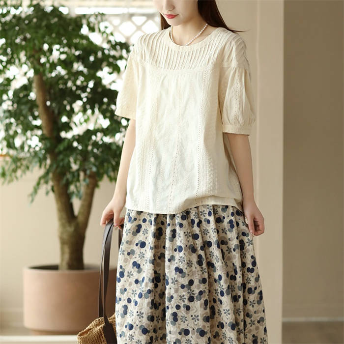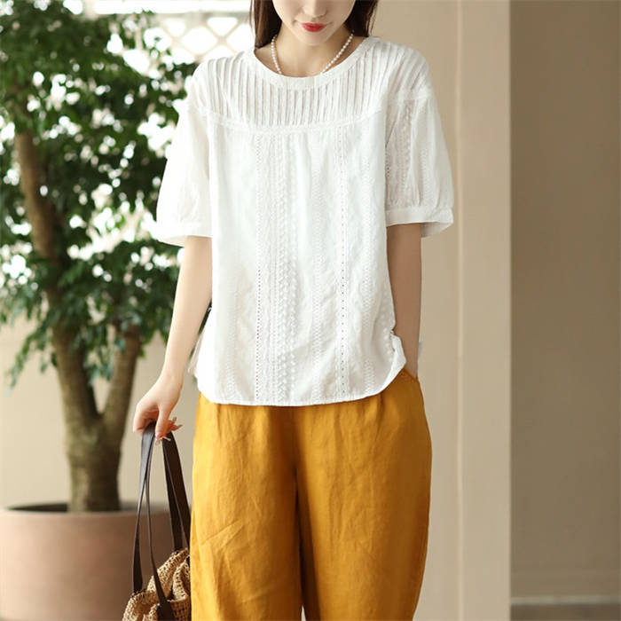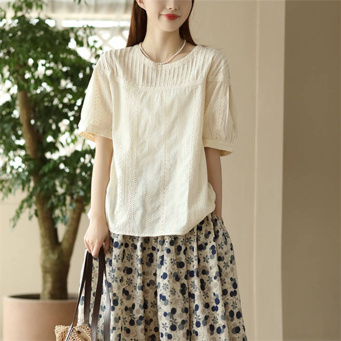 半袖トップス クルーネック 綿 わた