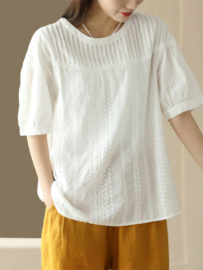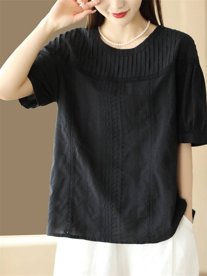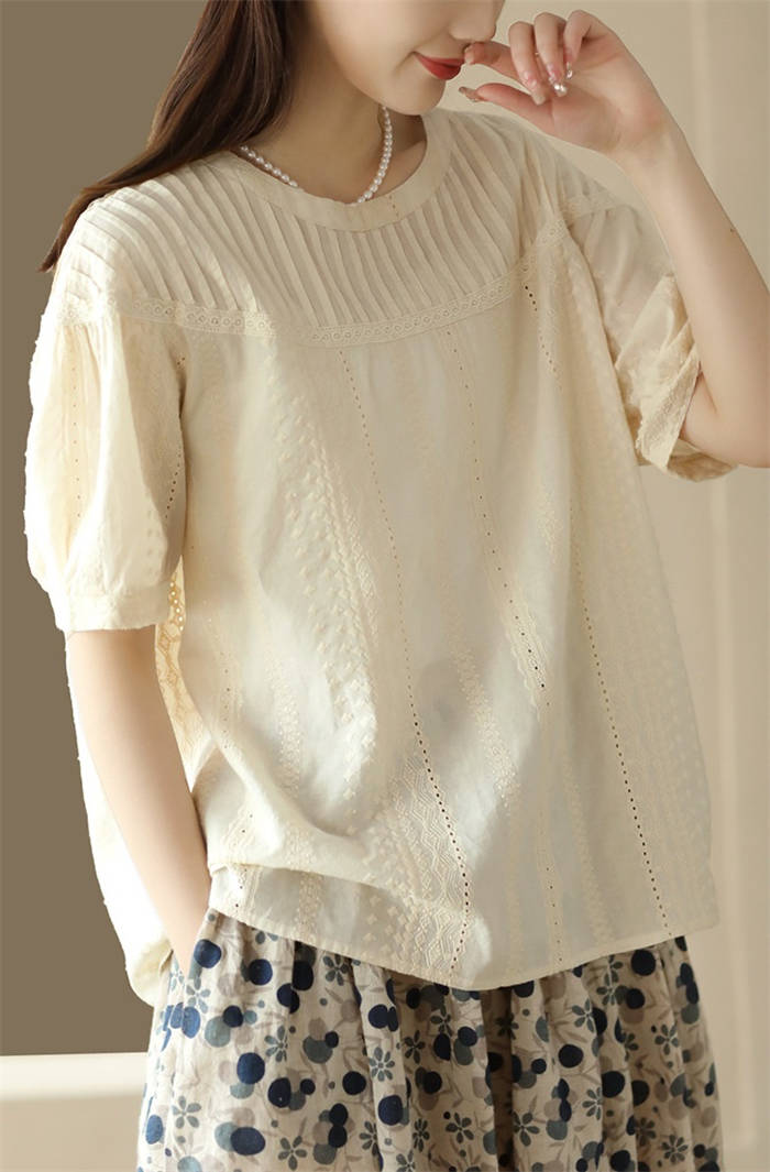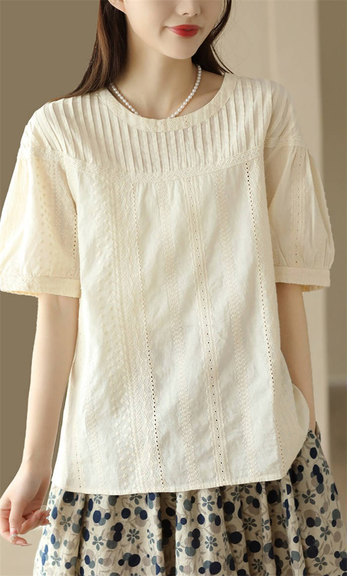 半袖トップス クルーネック 綿 わた