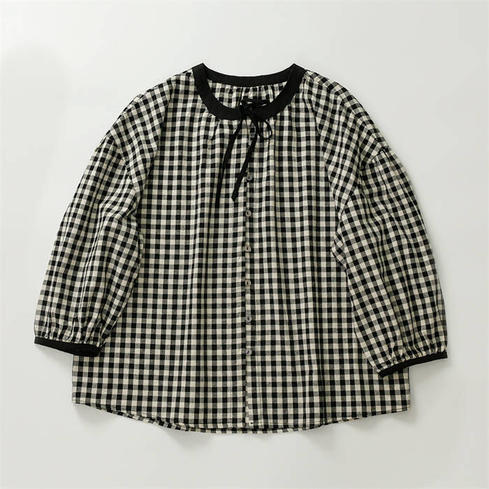 シアースリーブ ドッキングシャツ ボウタイシャツブラウス