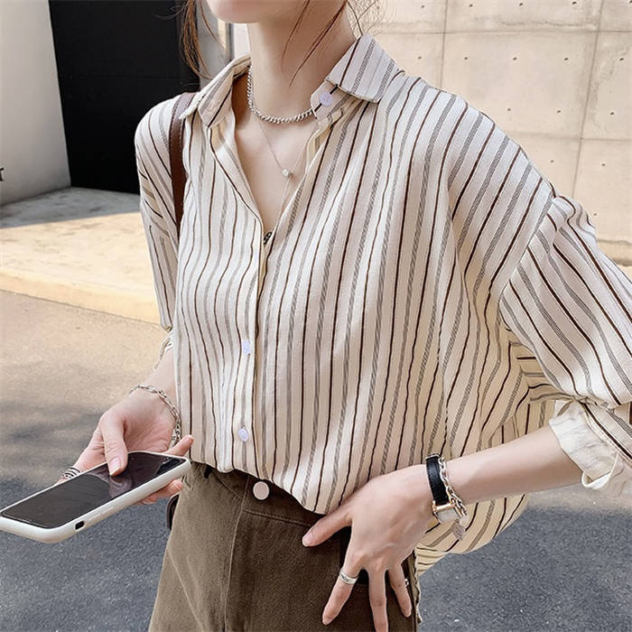 シャツ レディース 長袖 春 夏 秋 春夏秋 シャツブラウス レディースシャツ 長袖シャツ 羽織り ライトシャツ ボーダー ストライプ 柄 ひやひや 涼しい 透け感 細見え 20代 30代 40代 5