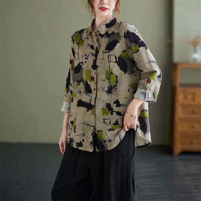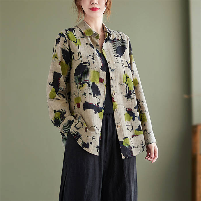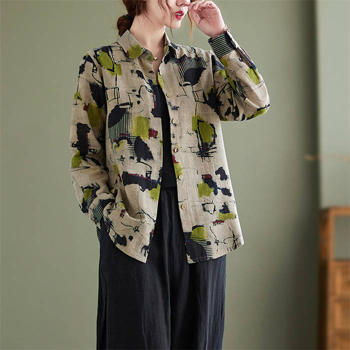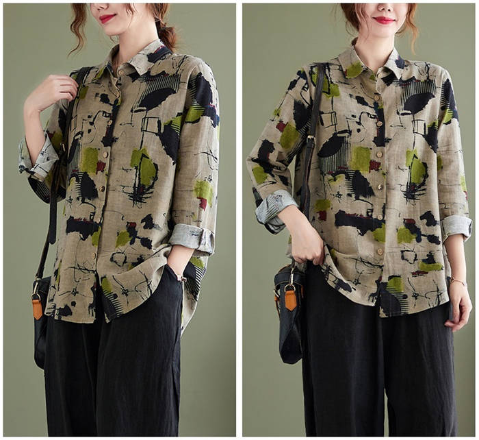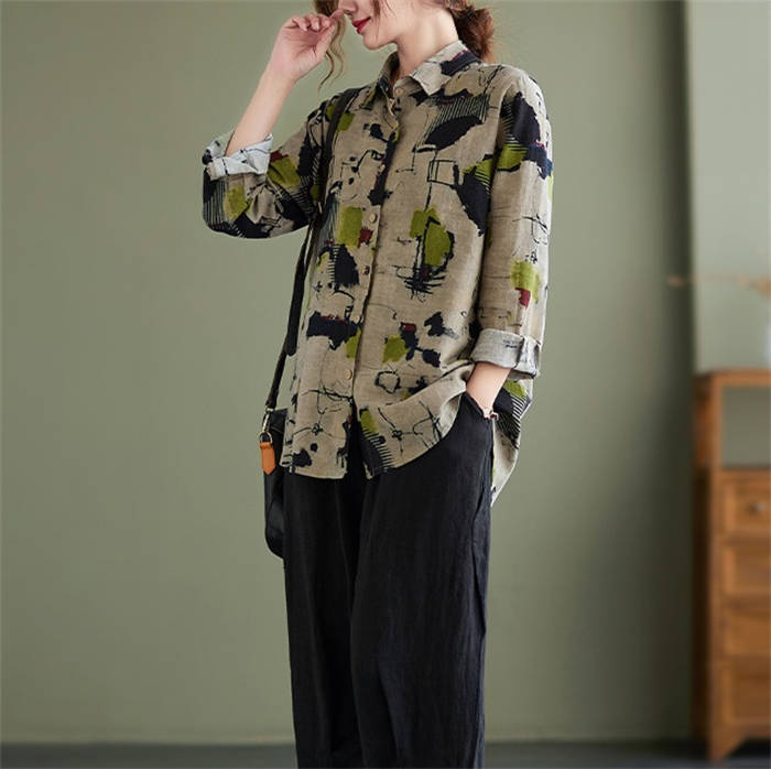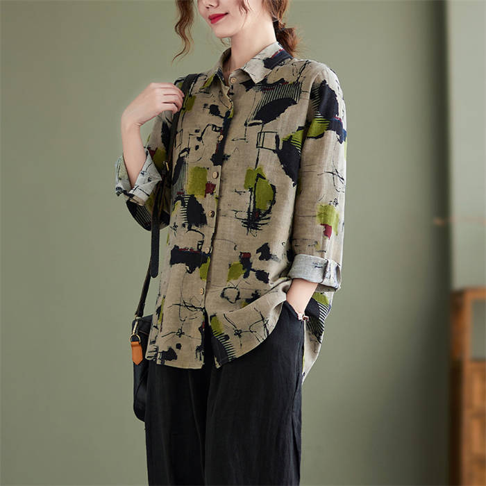 ガーゼシャツ 長袖トップス レディース 長袖シャツ シャツブラウス 総柄 着回し 花柄 快適 着心地 柔らか カワイイ 柔軟 個性 お出かけ 外出 普段着 日常 ディリー 20代 30代 40代 50