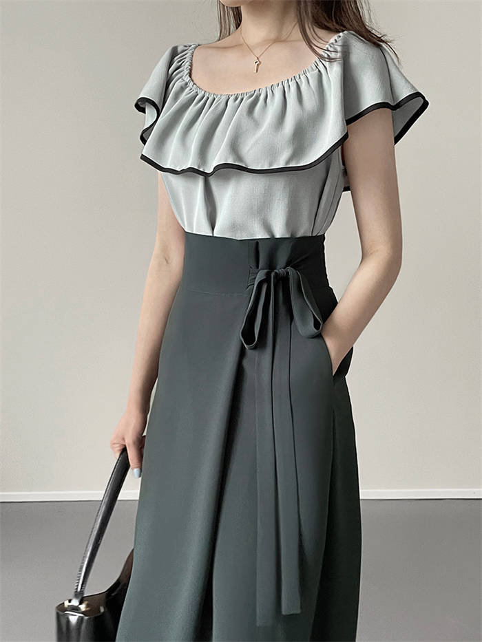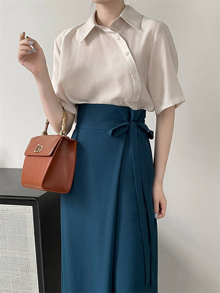 シアースリーブ ドッキングシャツ ボウタイシャツブラウス
