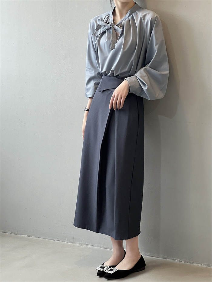 シアースリーブ ドッキングシャツ ボウタイシャツブラウス