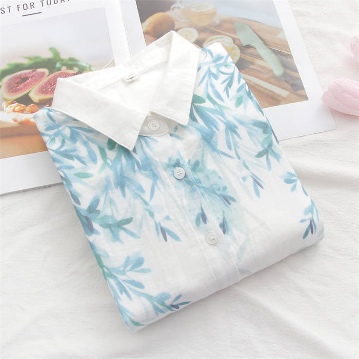 柄 ガーゼ シャツ レディースシャツ