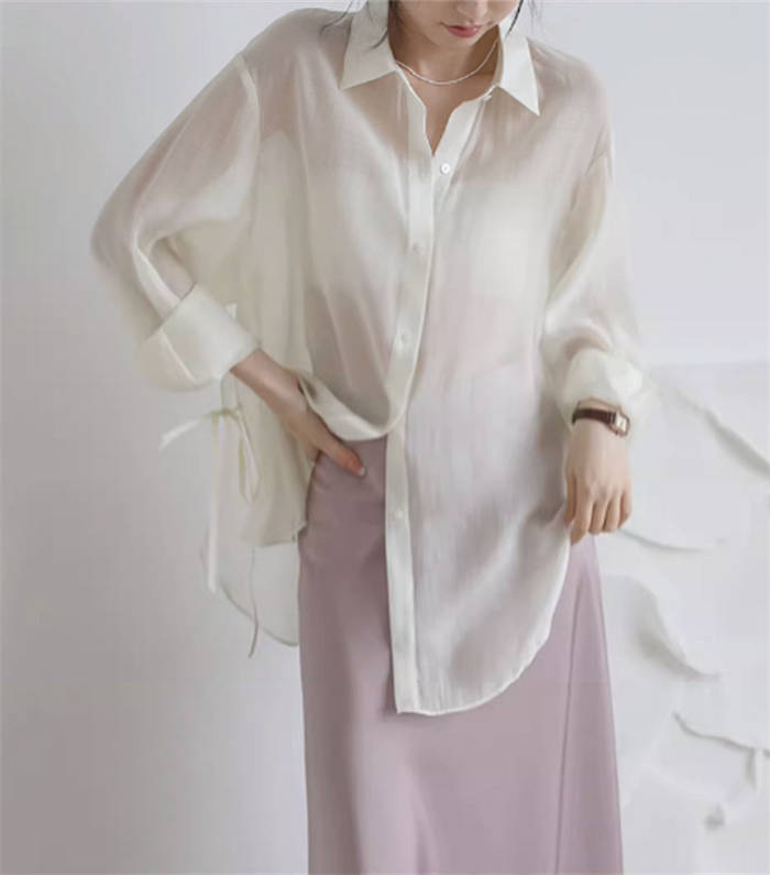 シアースリーブ ドッキングシャツ ボウタイシャツブラウス