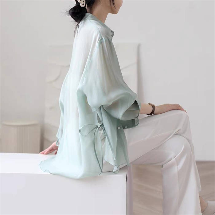 シフォンブラウス シアーブラウス ボリューム袖