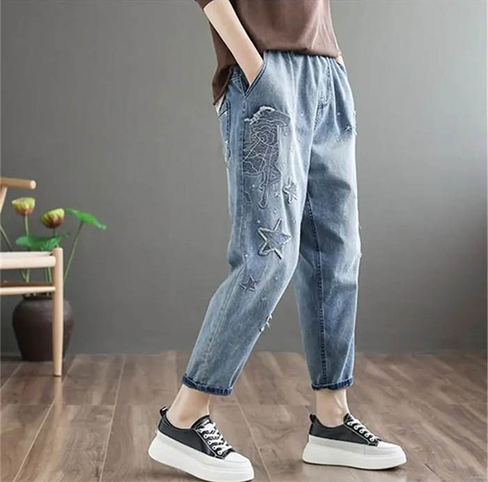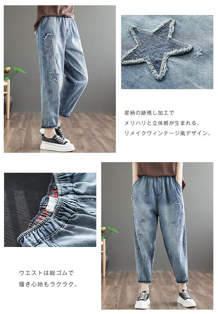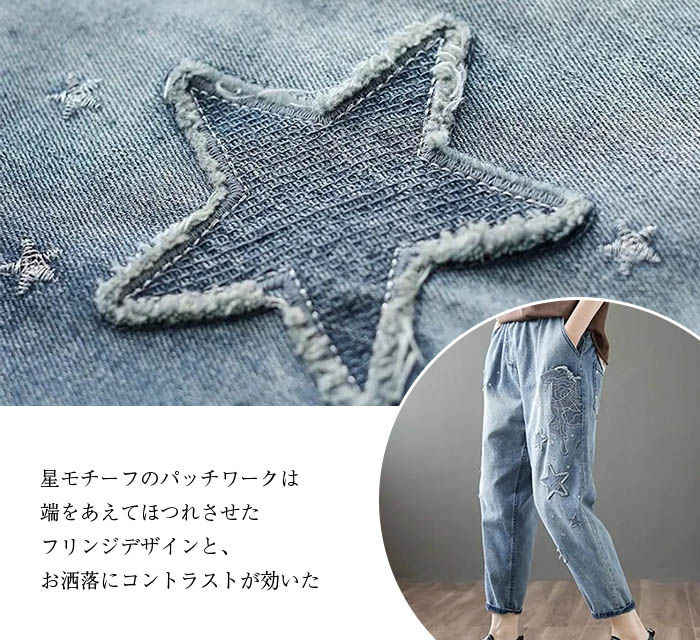 デニムパンツ ビジュー付き