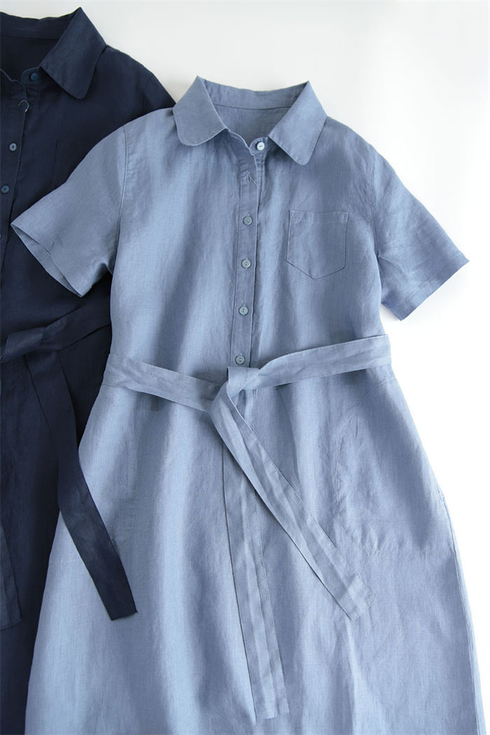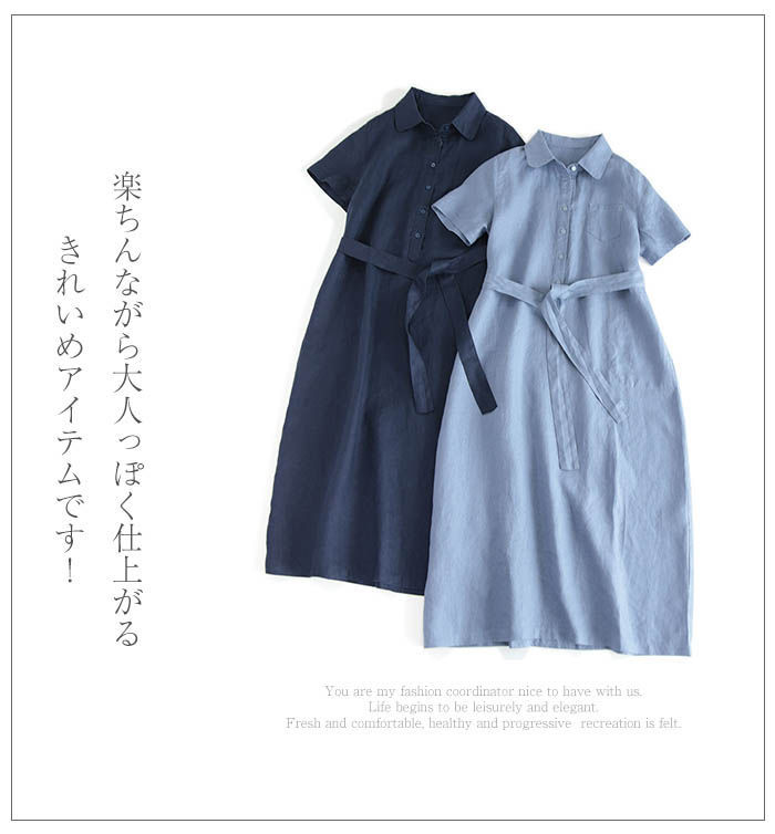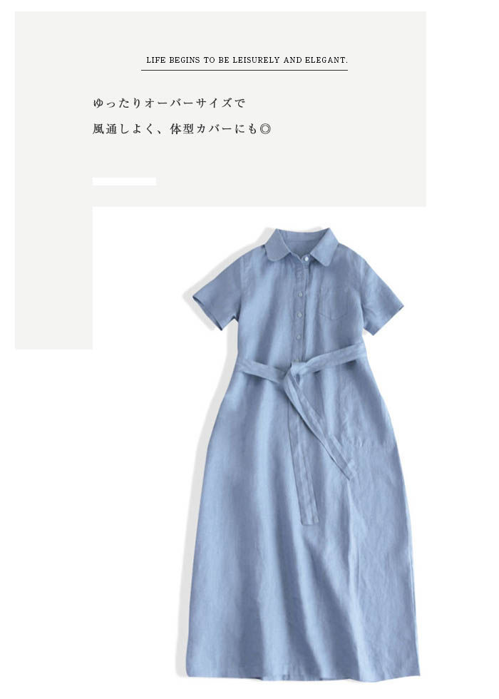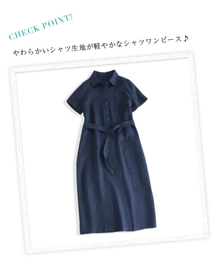 ロング 半袖 シャツワンピース レディ