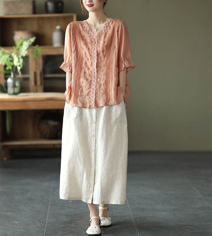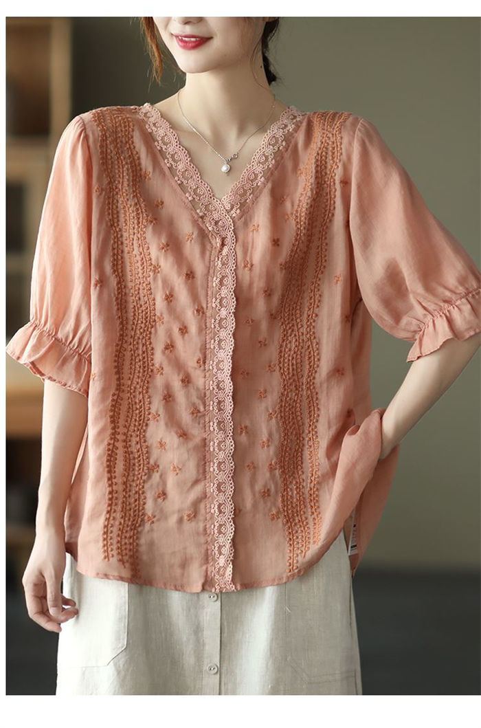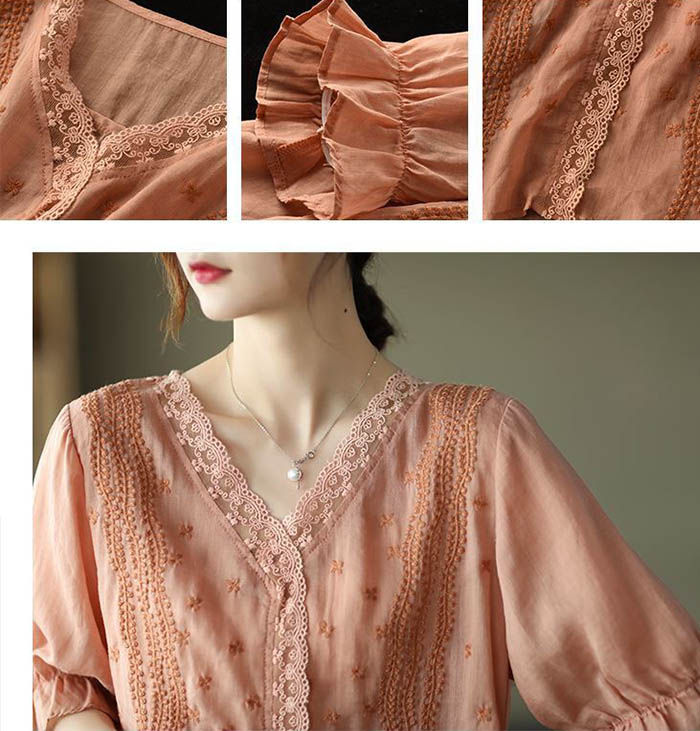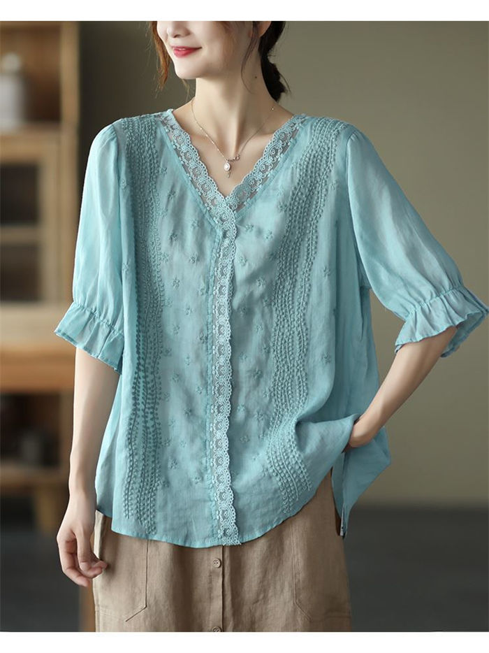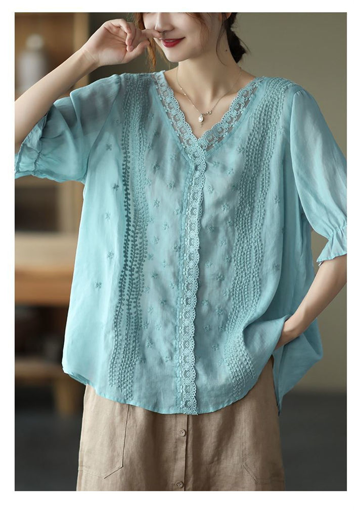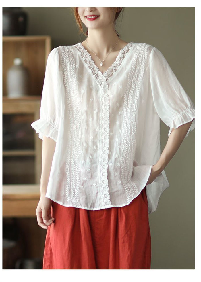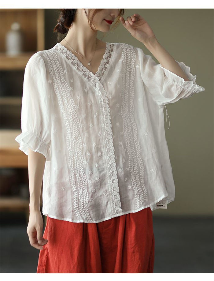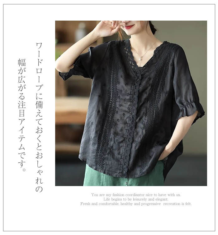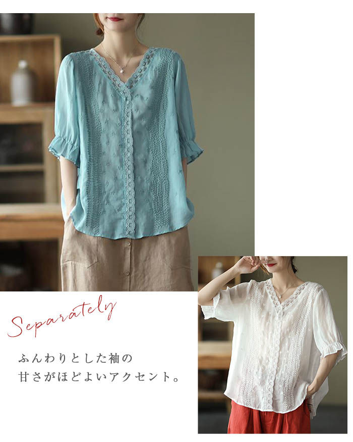 ブラウス 半袖 レース 夏 薄手 tシ