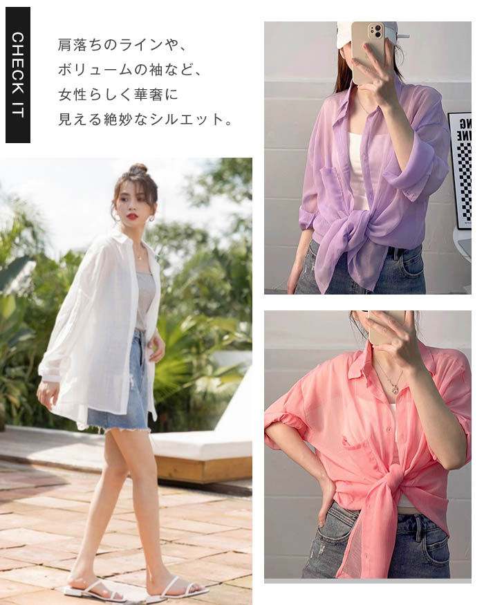 シフォンブラウス シアーブラウス ボリューム袖