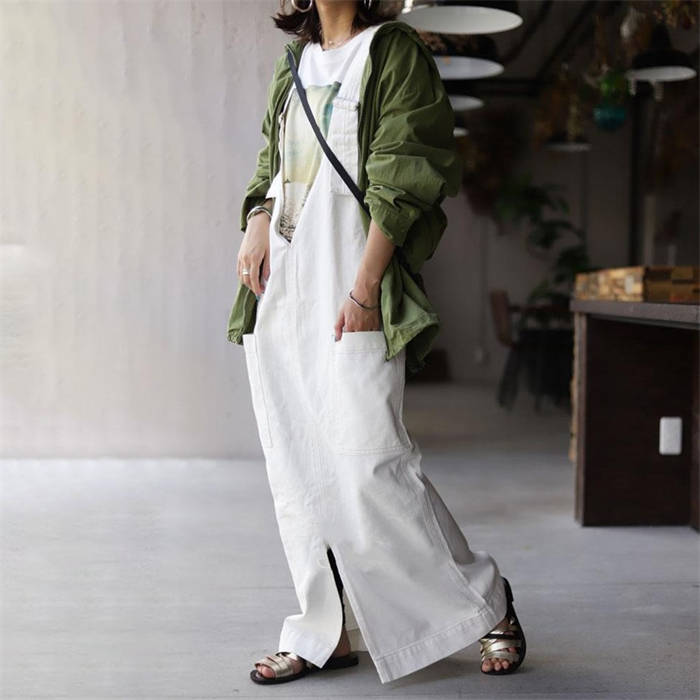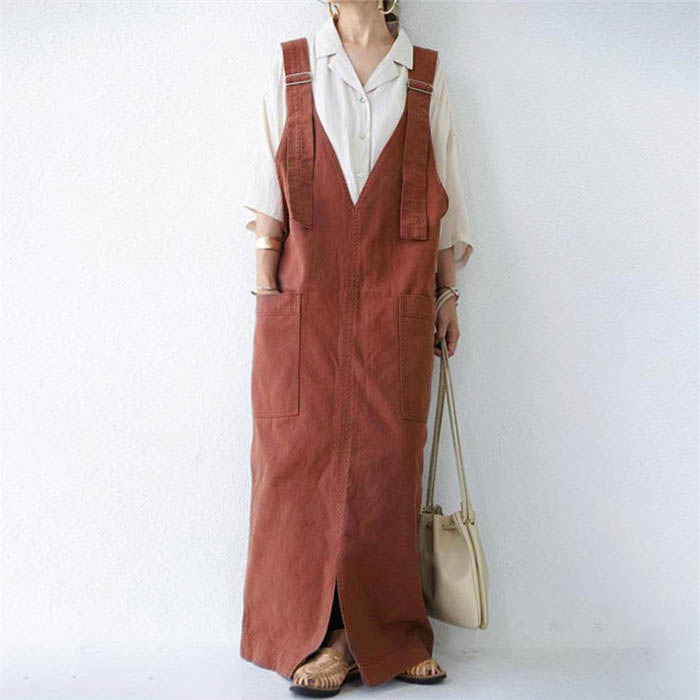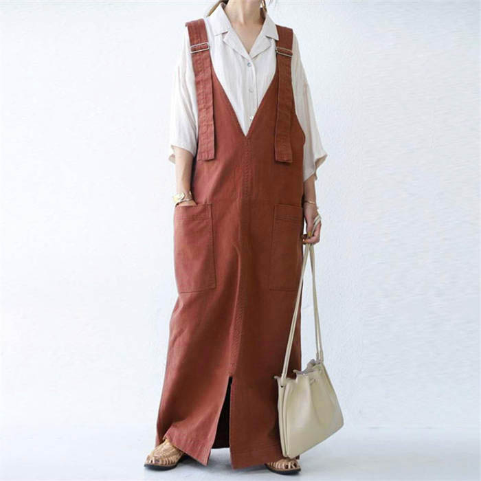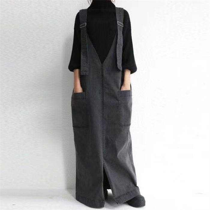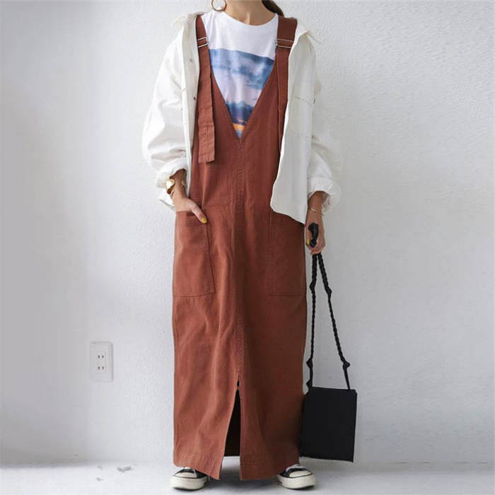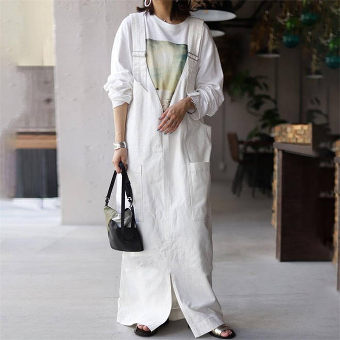 ジャンパースカート 春秋 無地 マキシ