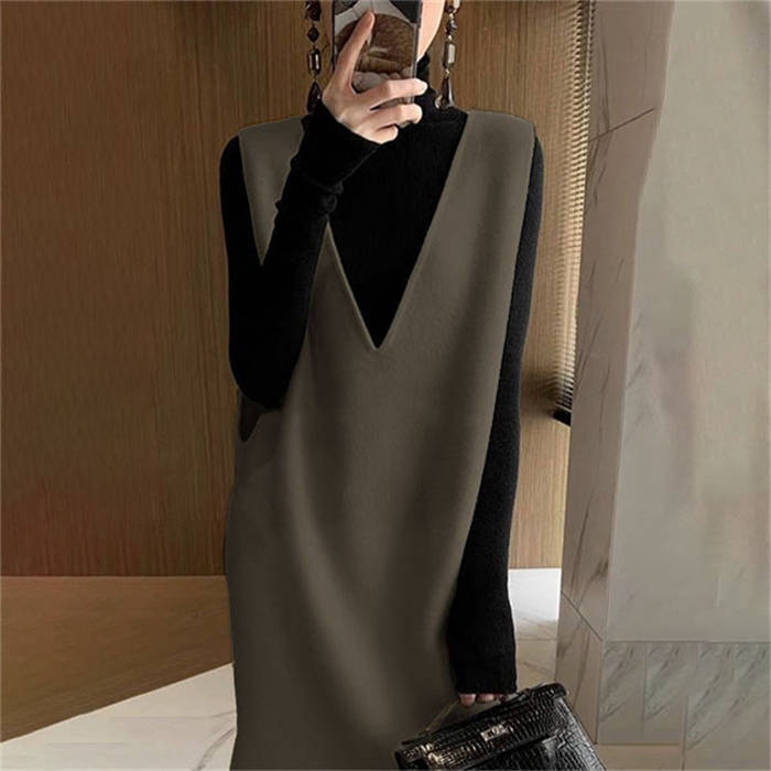 ジャンパースカート 秋 冬 Vネック