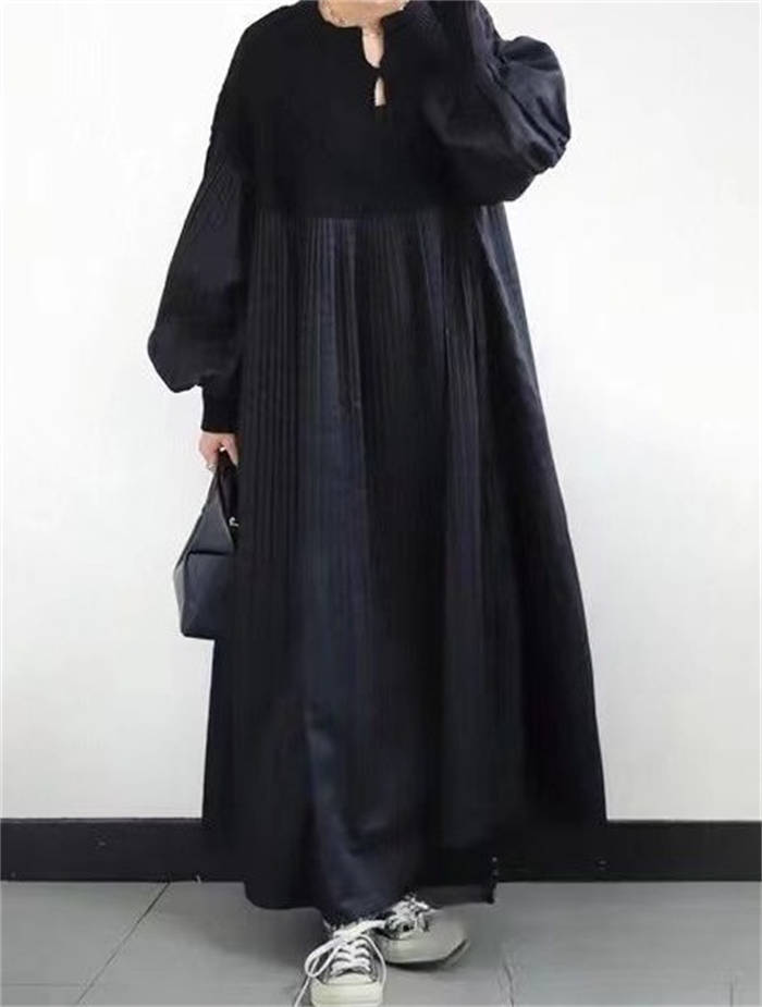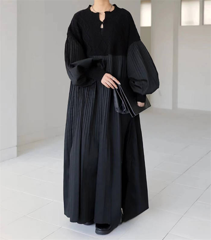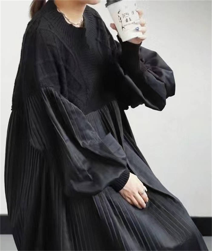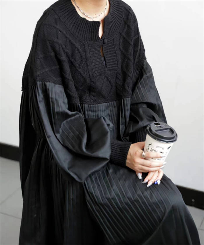 異素材 ワンピース ニット編み 春秋