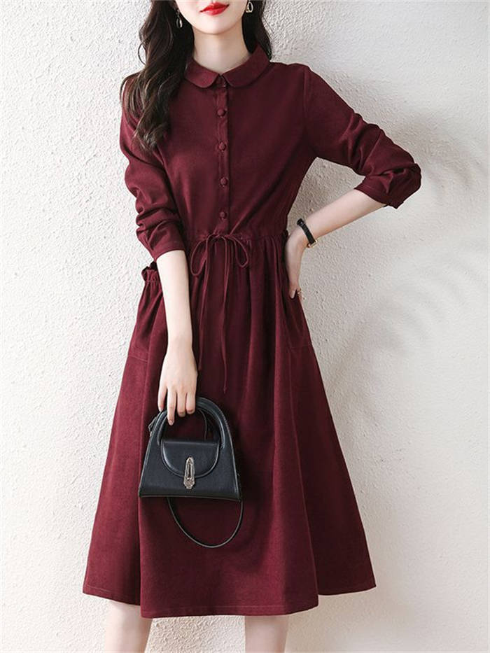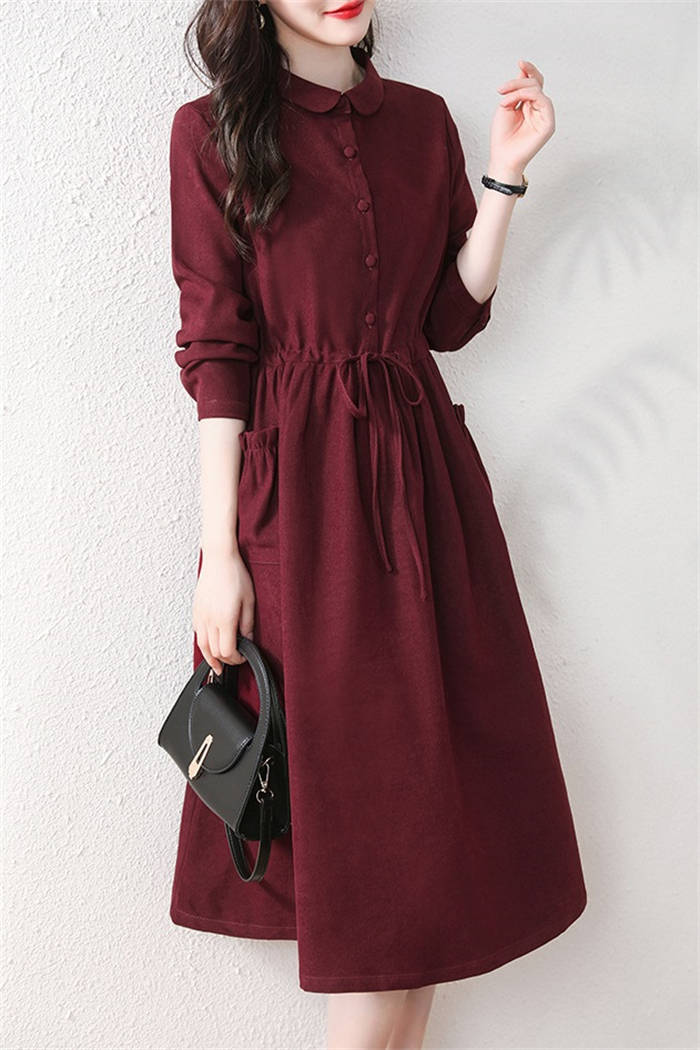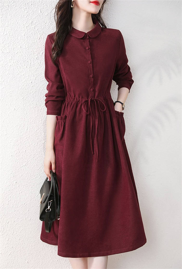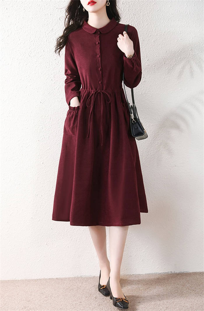 コーデュロイ ワンピース 春 秋冬 き