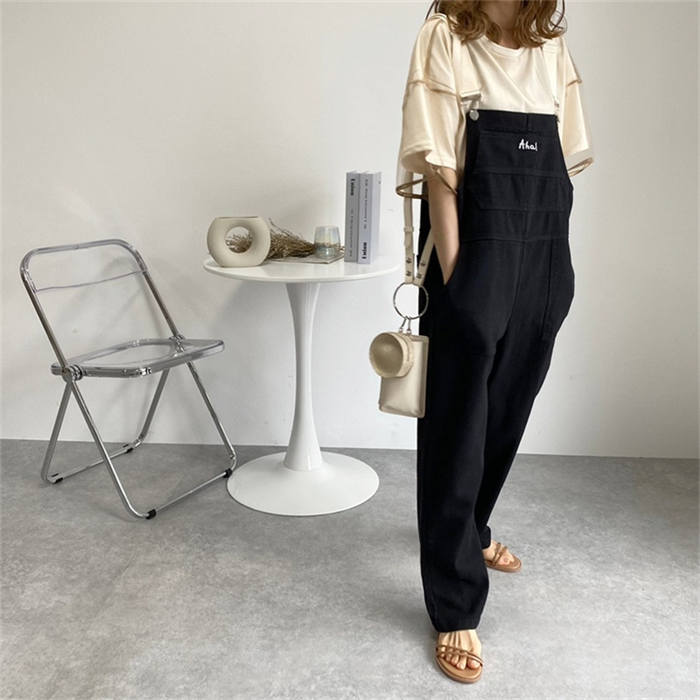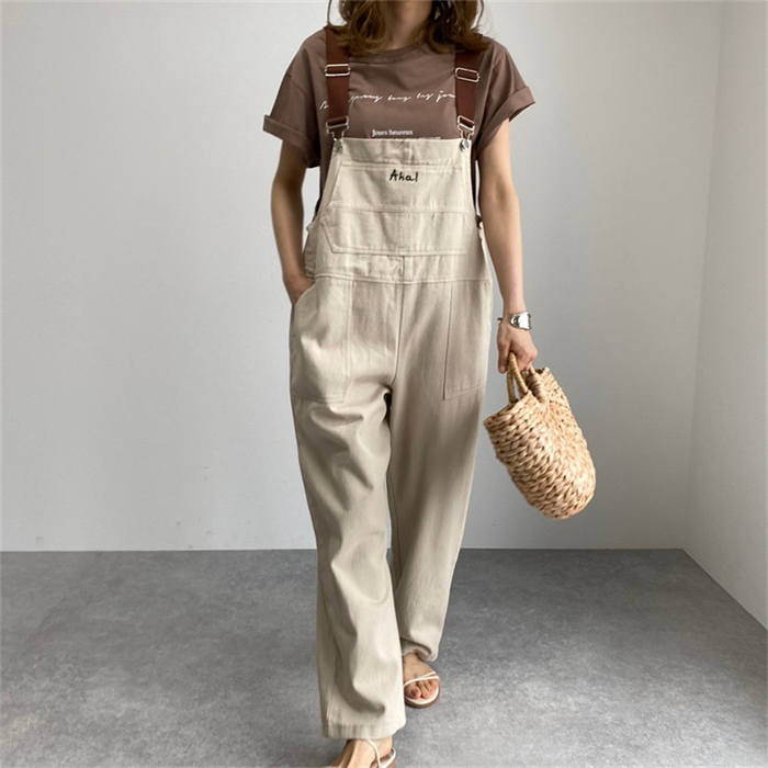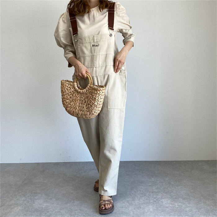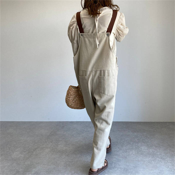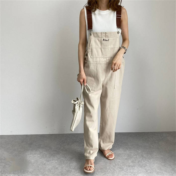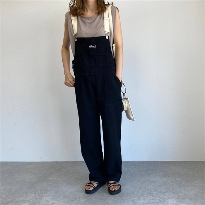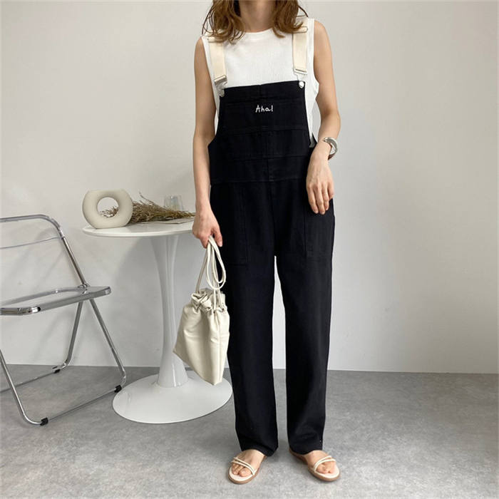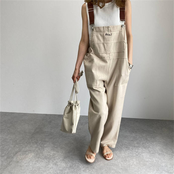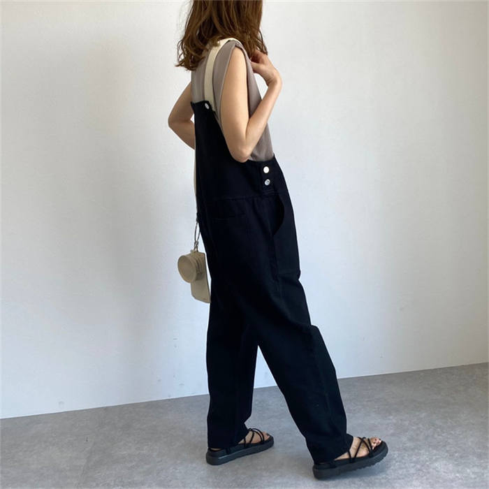 春秋 サロペット デニムパンツ 無地
