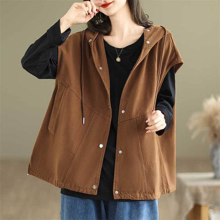 フード付きベスト レディース 春秋 着
