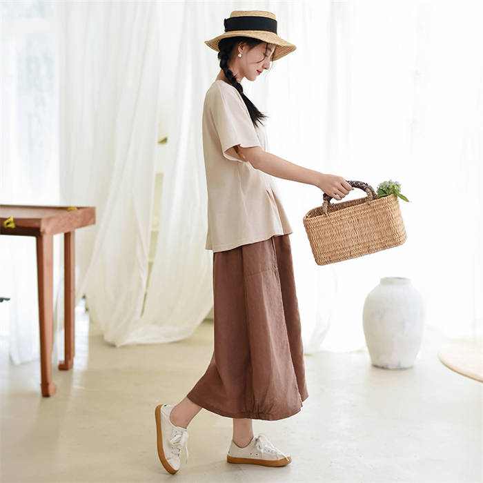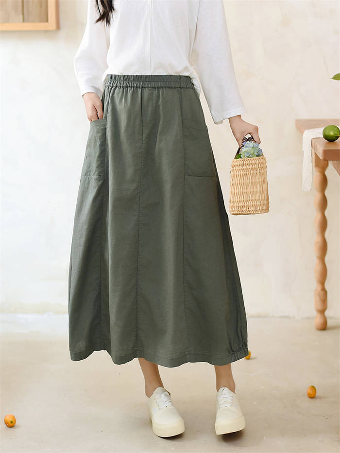 綿麻 バルーン スカート レディース