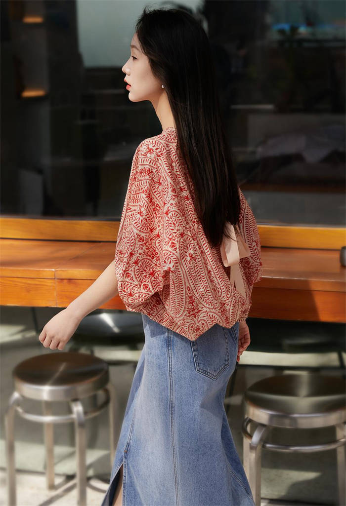 シアースリーブ ドッキングシャツ ボウタイシャツブラウス
