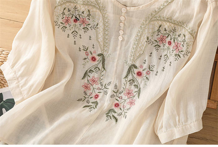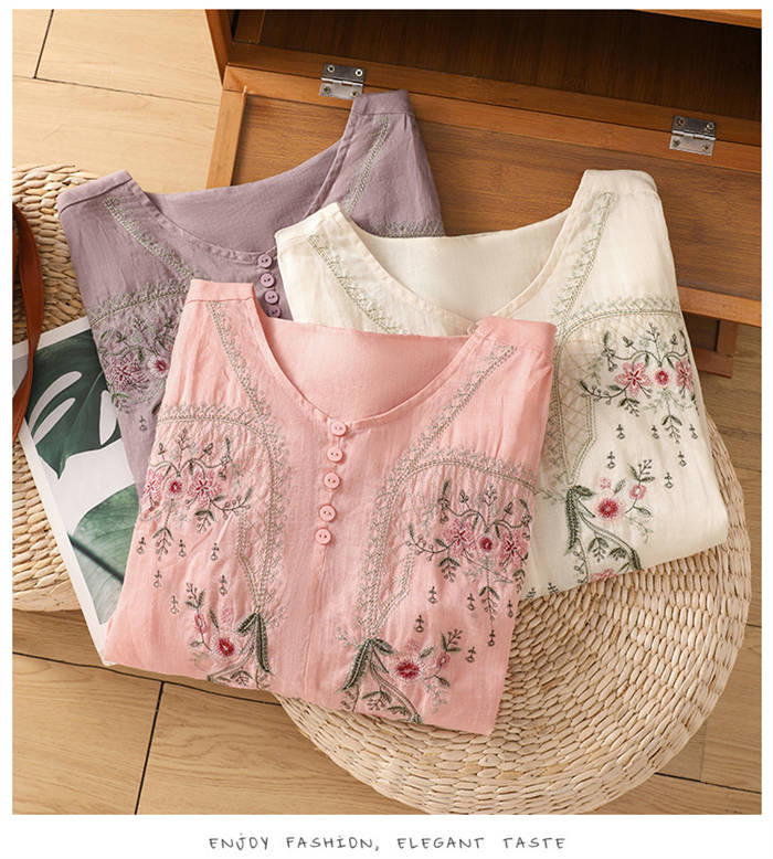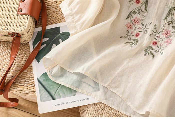 ブラウス レディース 夏 綿麻風 半袖