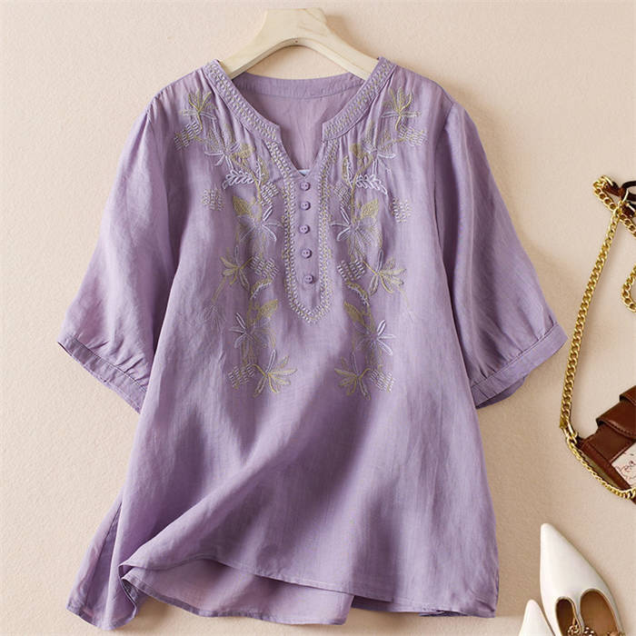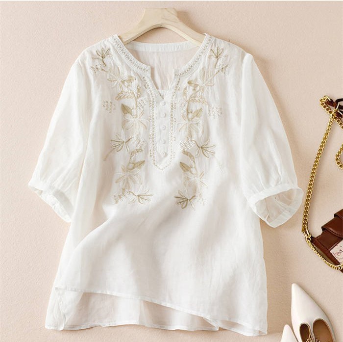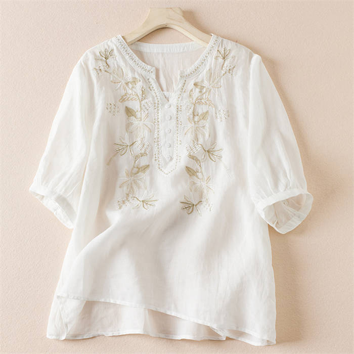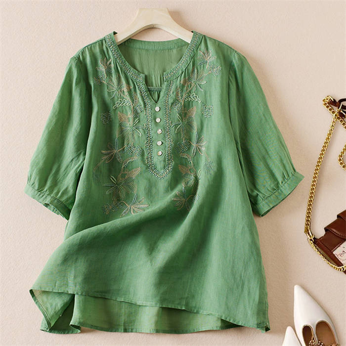 ブラウス レディース 夏 綿 半袖 切