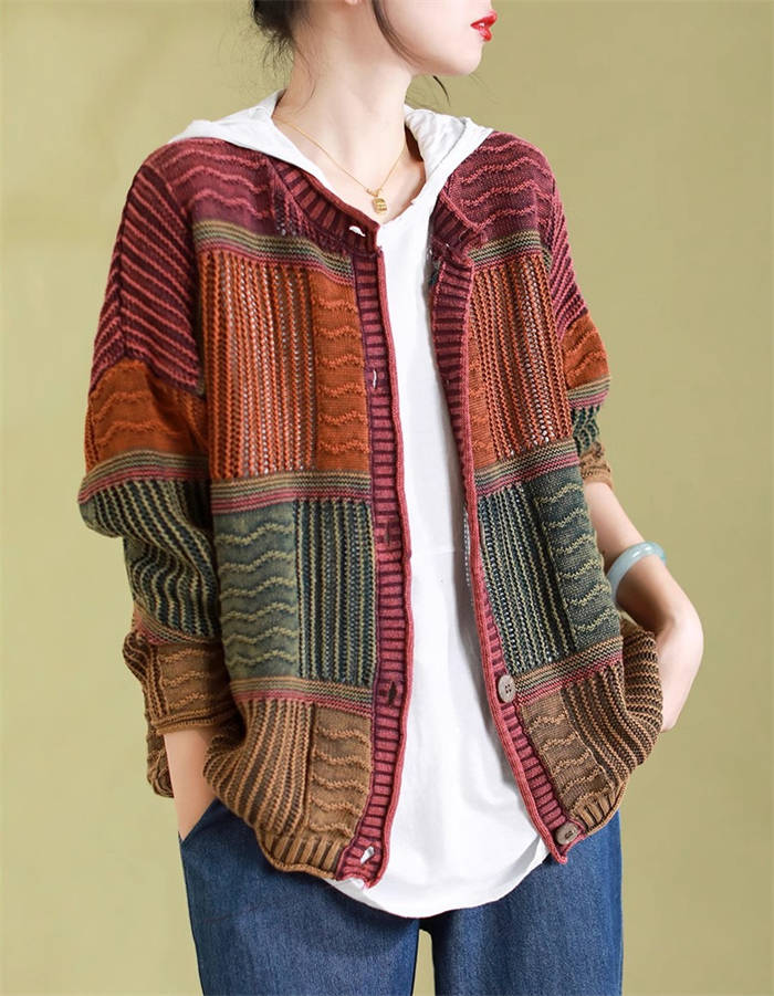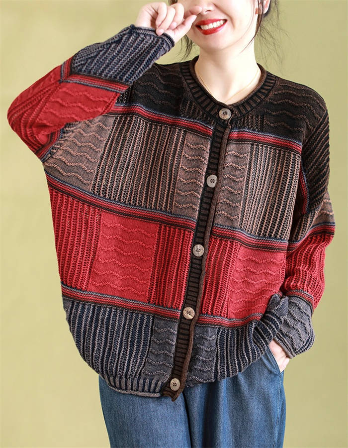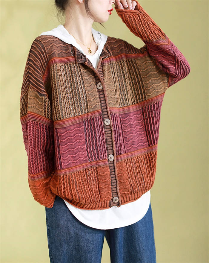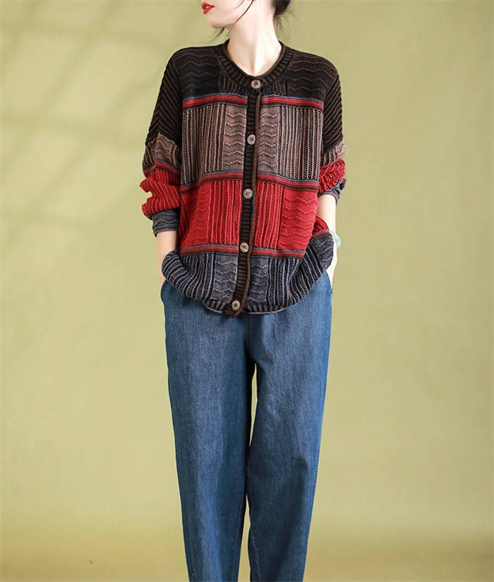 新作 ニットカーディガン 配色 春秋