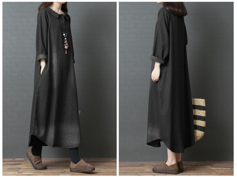 デニムワンピース ロング丈 ロングワン