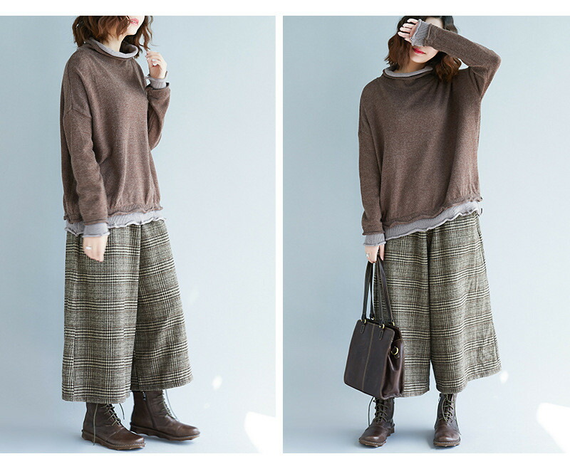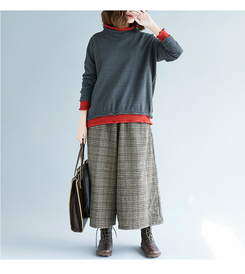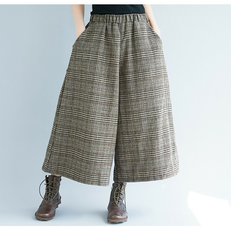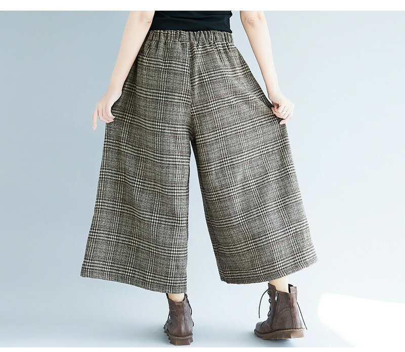 パンツワイドパンツチェックパンツ7分丈