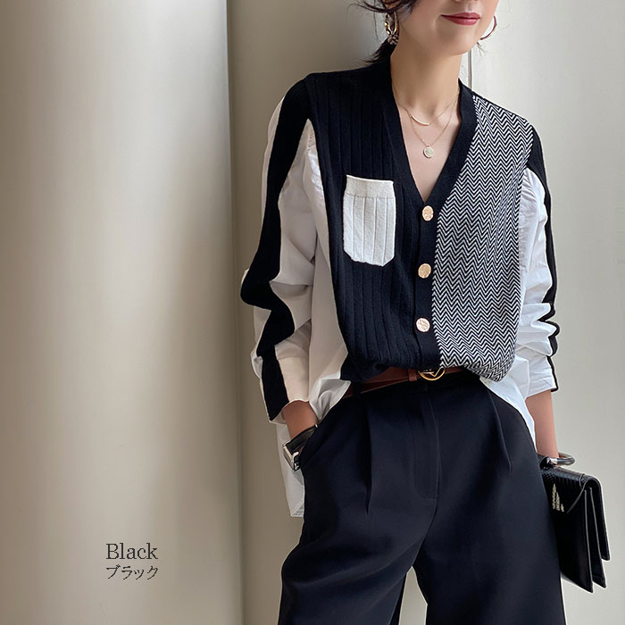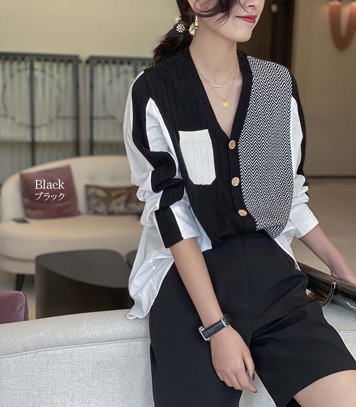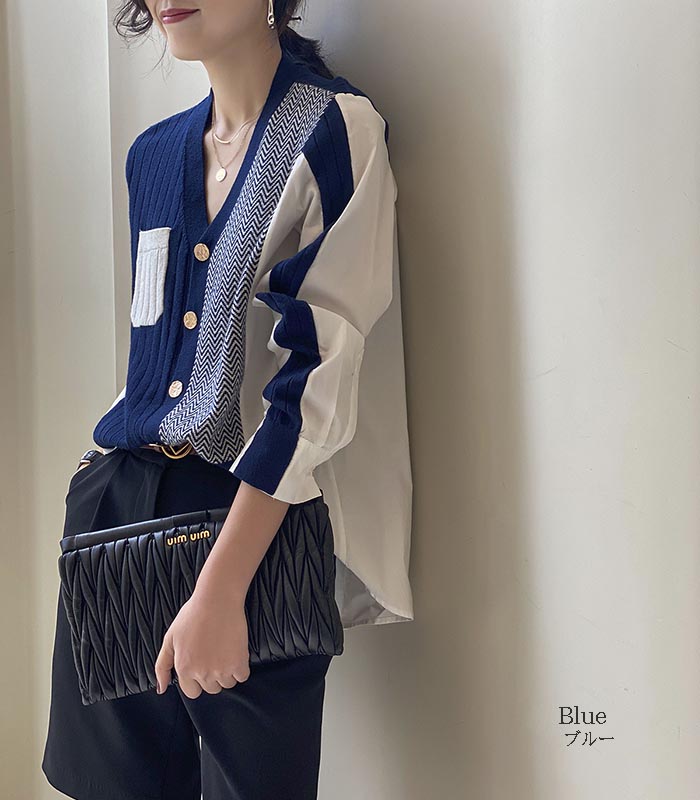 シアースリーブ ドッキングシャツ ボウタイシャツブラウス