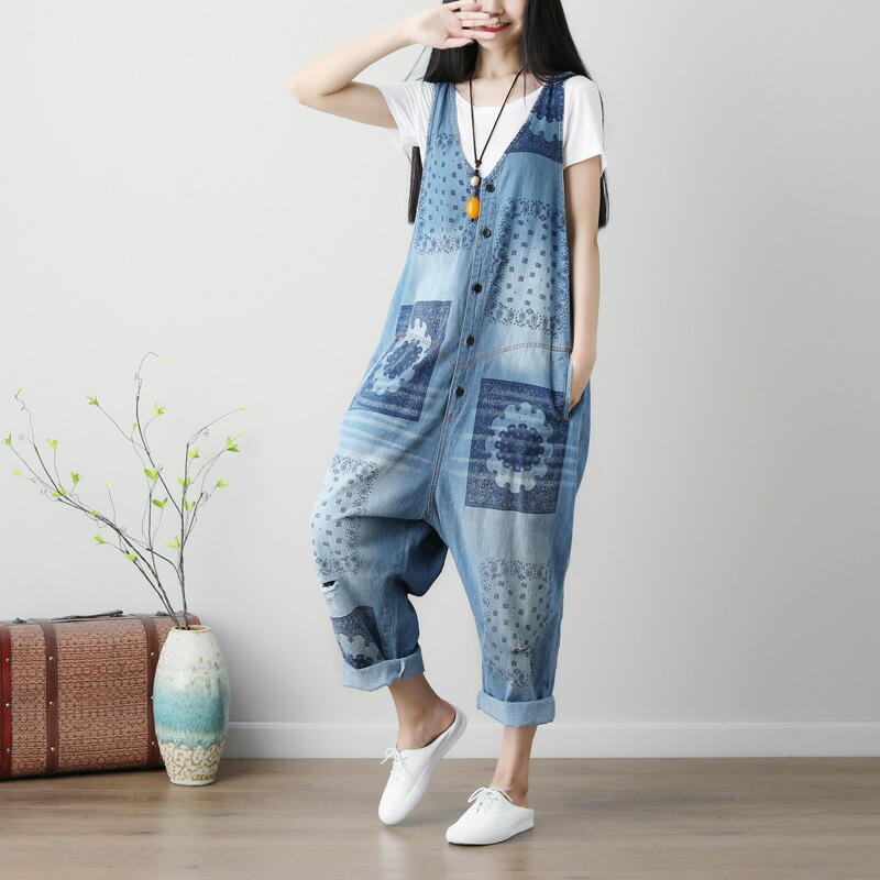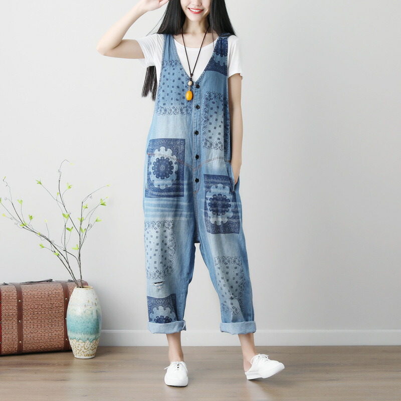 デニム オールインワン サロペット レ
