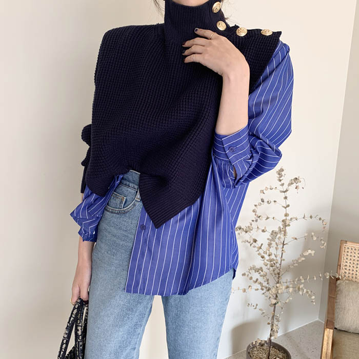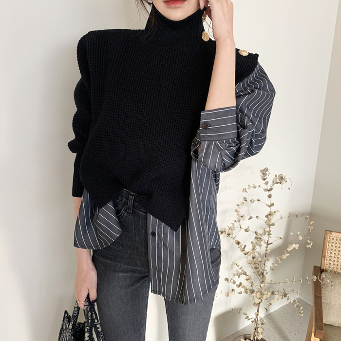 異素材切り替え トップス ニットソー