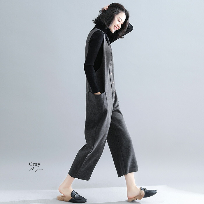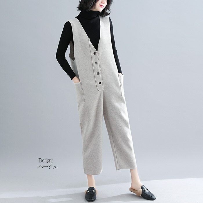 大人のVネックサロペット レディース
