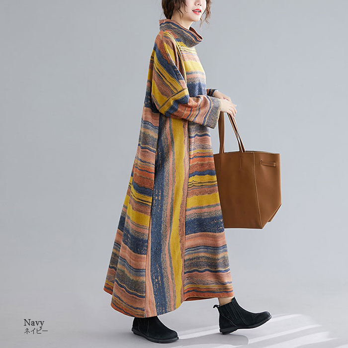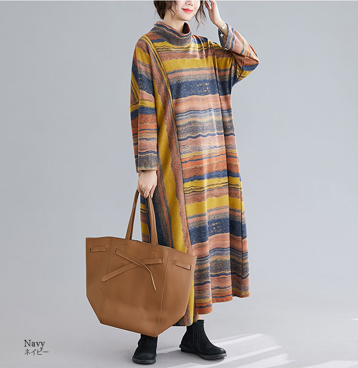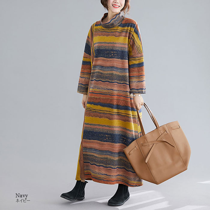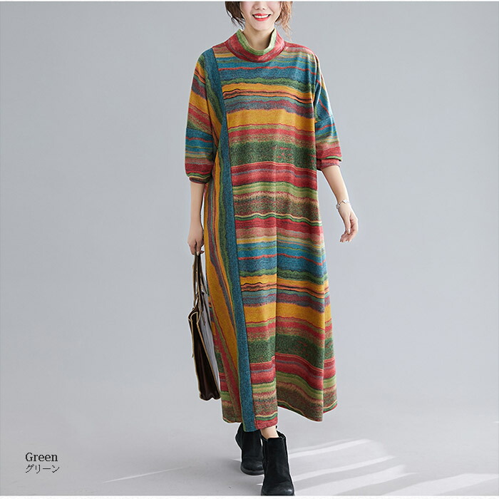 ワンピース レディース 秋冬 長袖 ロ