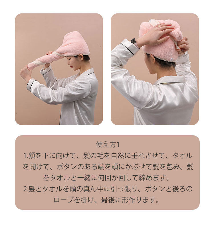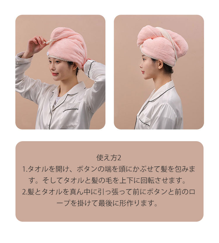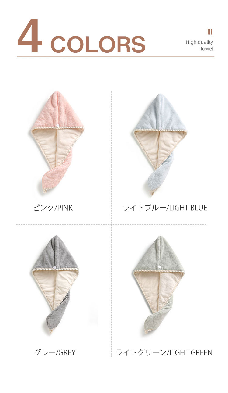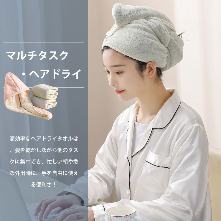 ヘアタオル ヘアキャップ 2枚セット 超吸水 速乾 ヘアドライタオル ドライキャップ タオルキャップ お風呂上がり 大人 ヘアケア 選べる4カラー 吸水タオル ヘアドライ ターバン ヘアターバン ロン