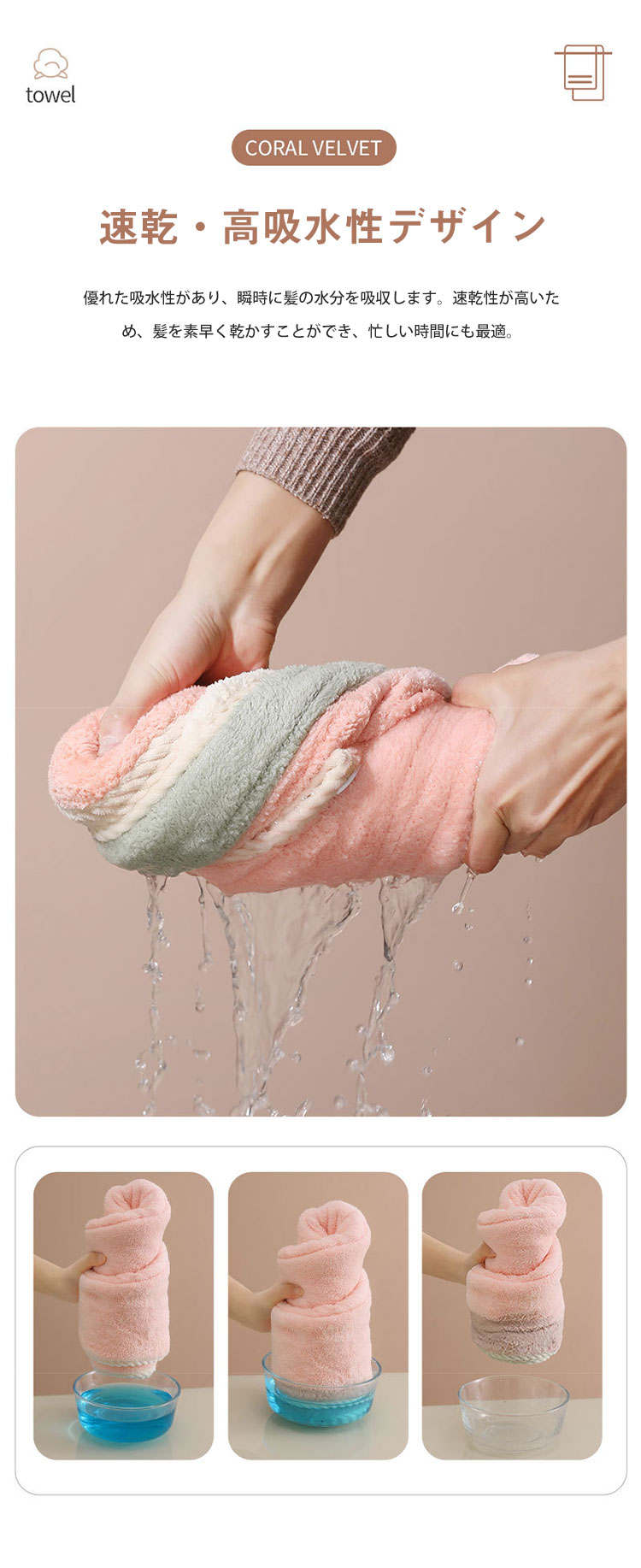 商品詳細商品名 ヘアドライタオルサイズ 目安70×33cm素材 コーラルフリース色 ピンク、ライトブルー、グレー、ライトグリーン生産国 MADE IN PRC