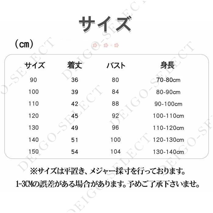 90cm 100cm 110cm 120cm 130cm 140cm 150cm素材 ポリエステル原産国 Made in China在庫についで ・弊社の商品在庫は複数店舗で共有しているため、入れ違いで在庫が無い場合もございます。