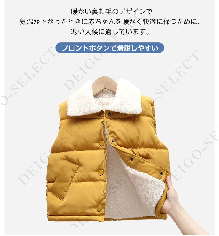 中綿ベスト 中綿入れ キッズ 100 防寒 120cm 裏起毛 厚手 ベスト 前開き 通園 ダウン アウター 幼稚園 コート ベスト ノースリーブ ベスト 綿 女の子 ダウンベスト