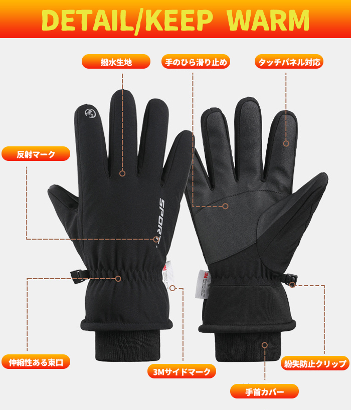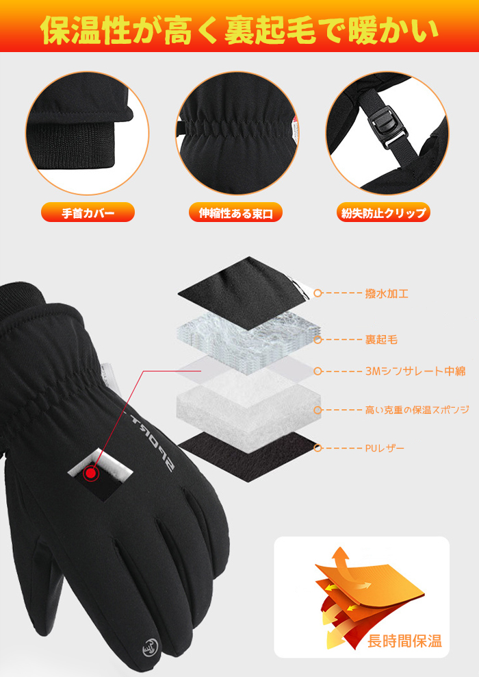3Mシンサレート 裏起毛 寒風に負けない、暖かな手袋でアウトドアを楽しもう 防風 防水 防寒グローブが冷たさから手を守ります