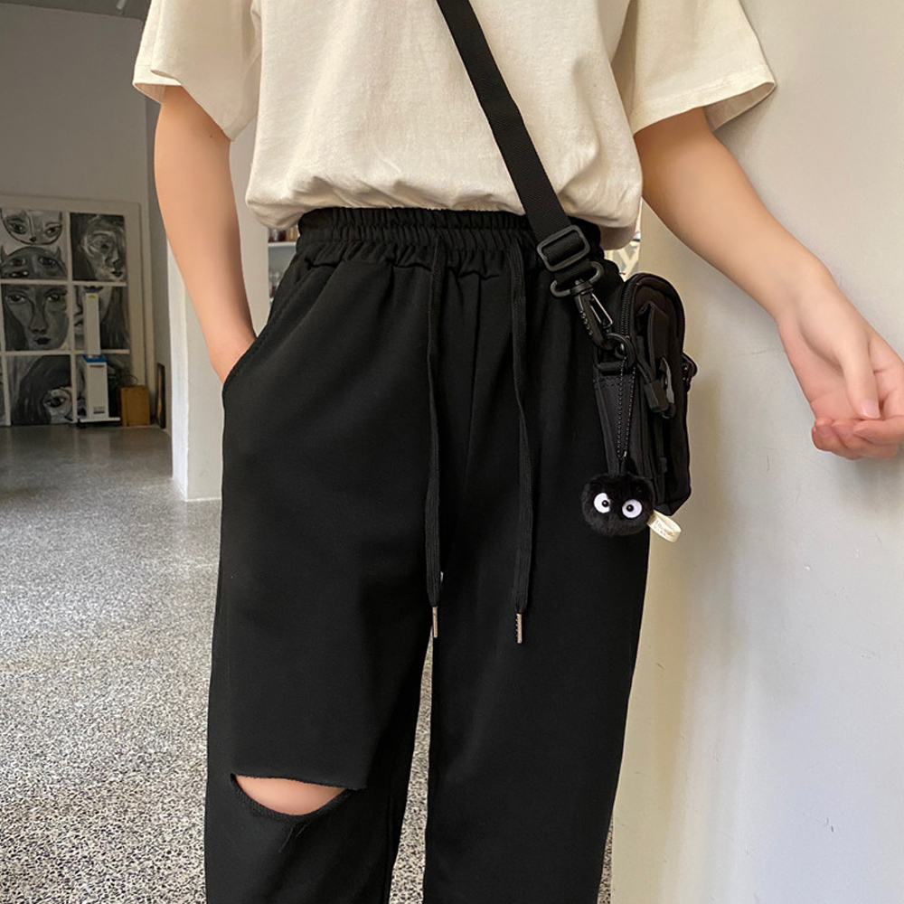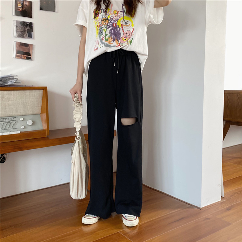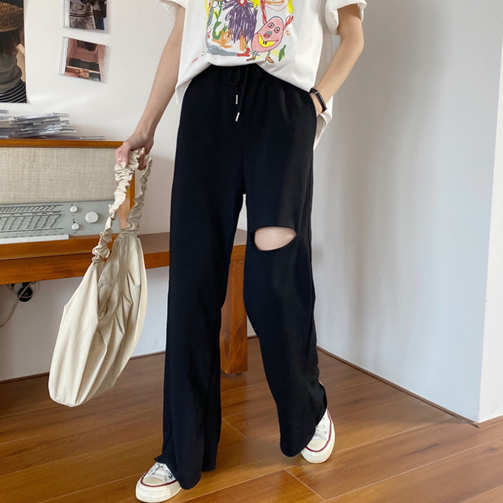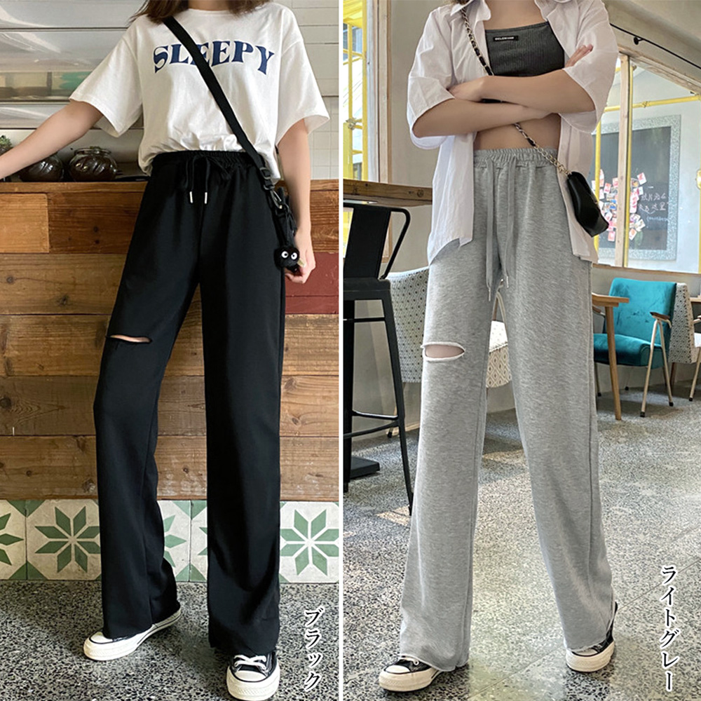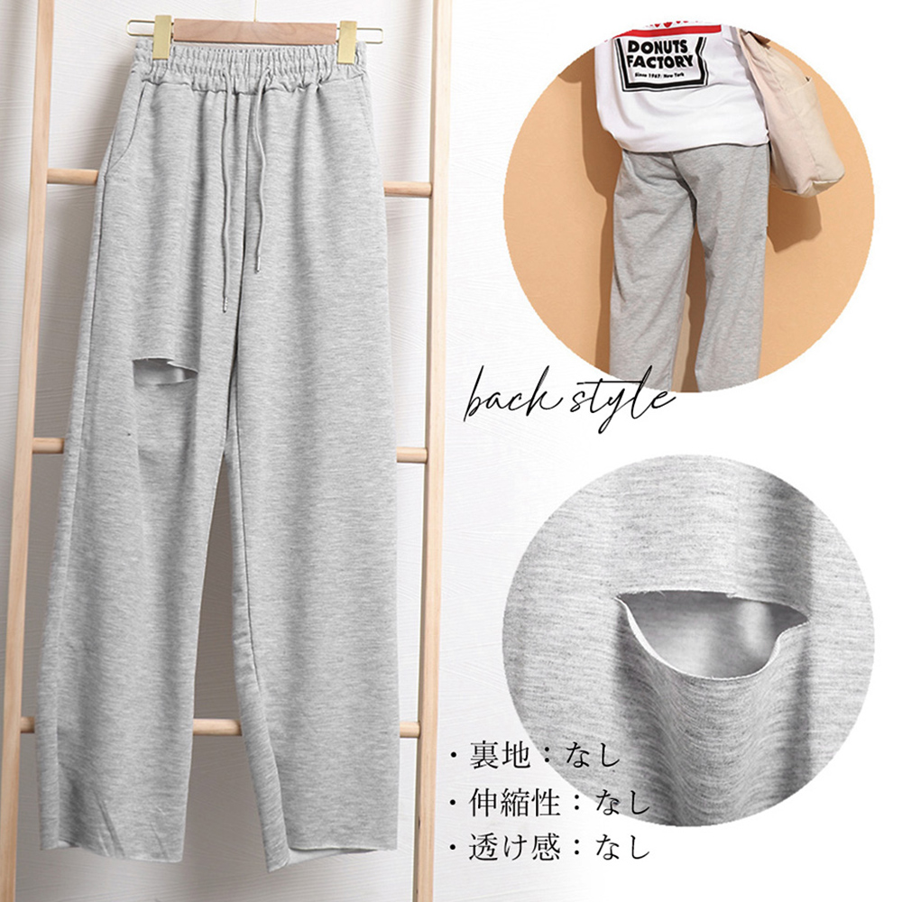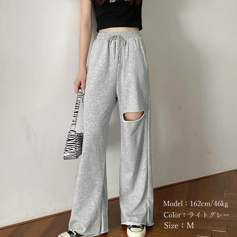 韓国 穴あき スエットロングパンツ ウ