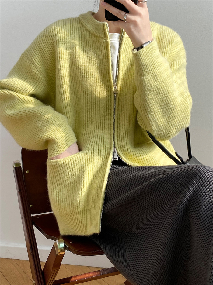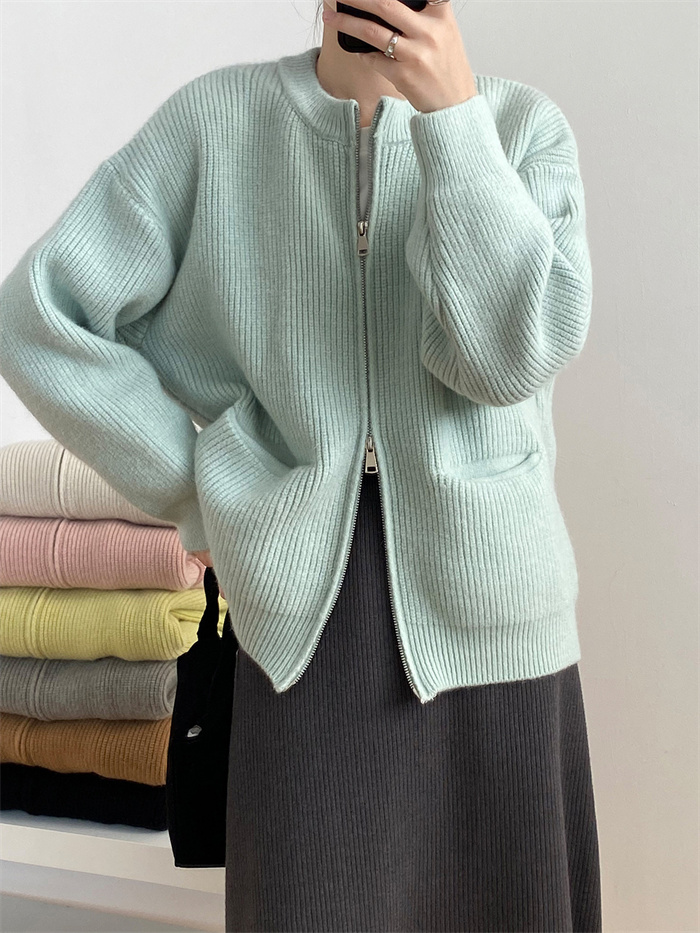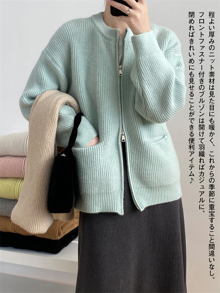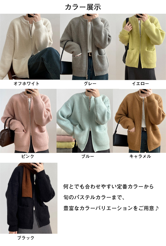 7色展開 ニット ジップ ブルゾン レ