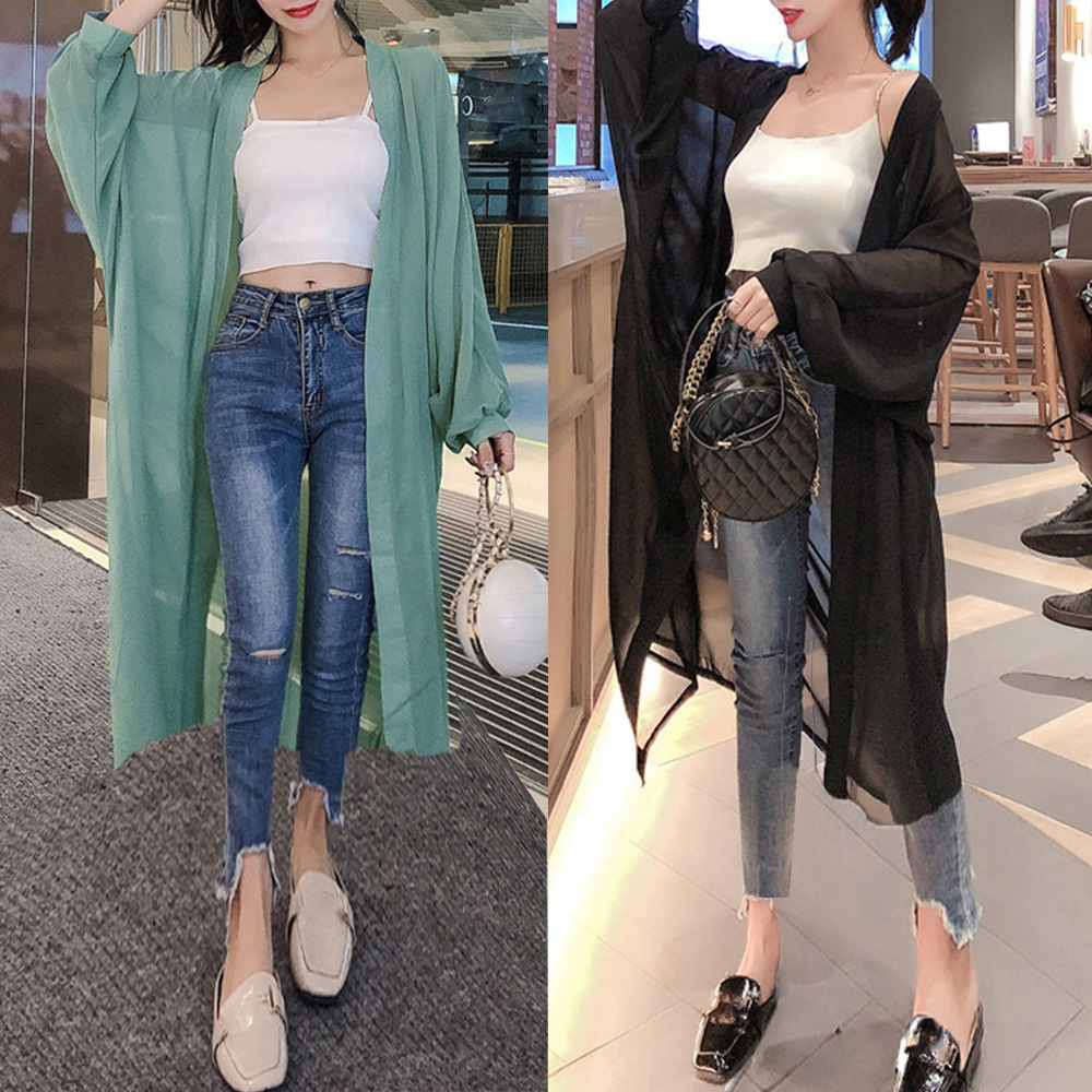 シアーカーディガン夏 ドルマン袖 ロン