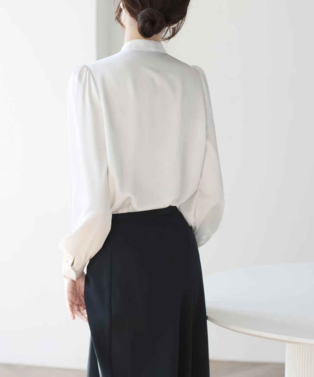 シアースリーブ ドッキングシャツ ボウタイシャツブラウス