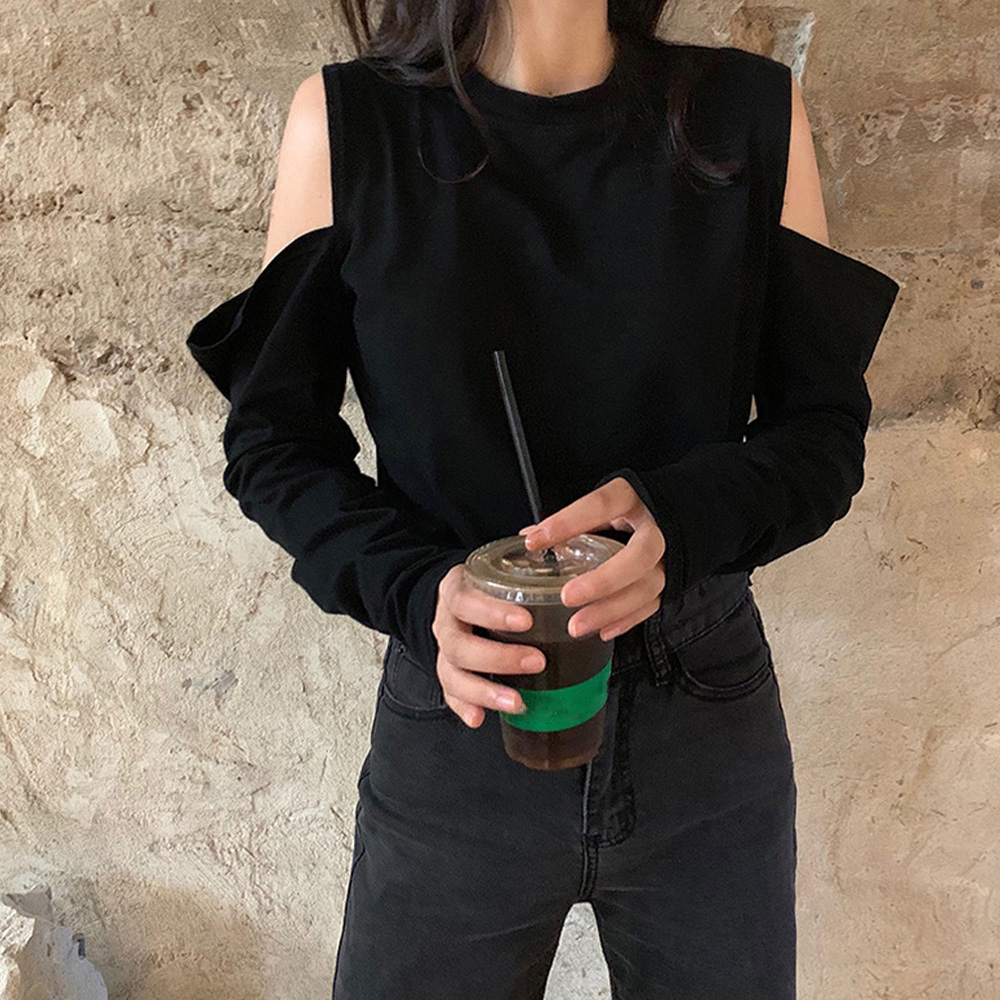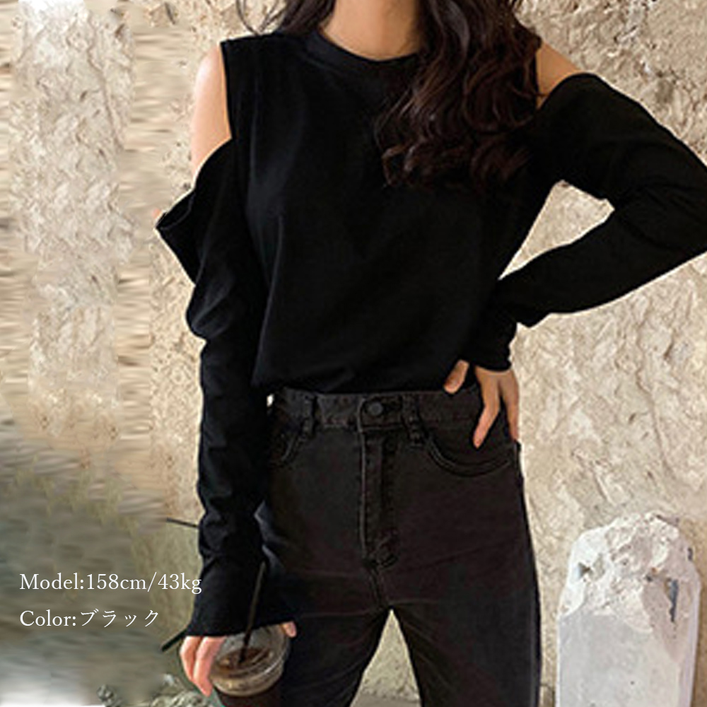 無地トップス 肩見せ 薄手 カットソー
