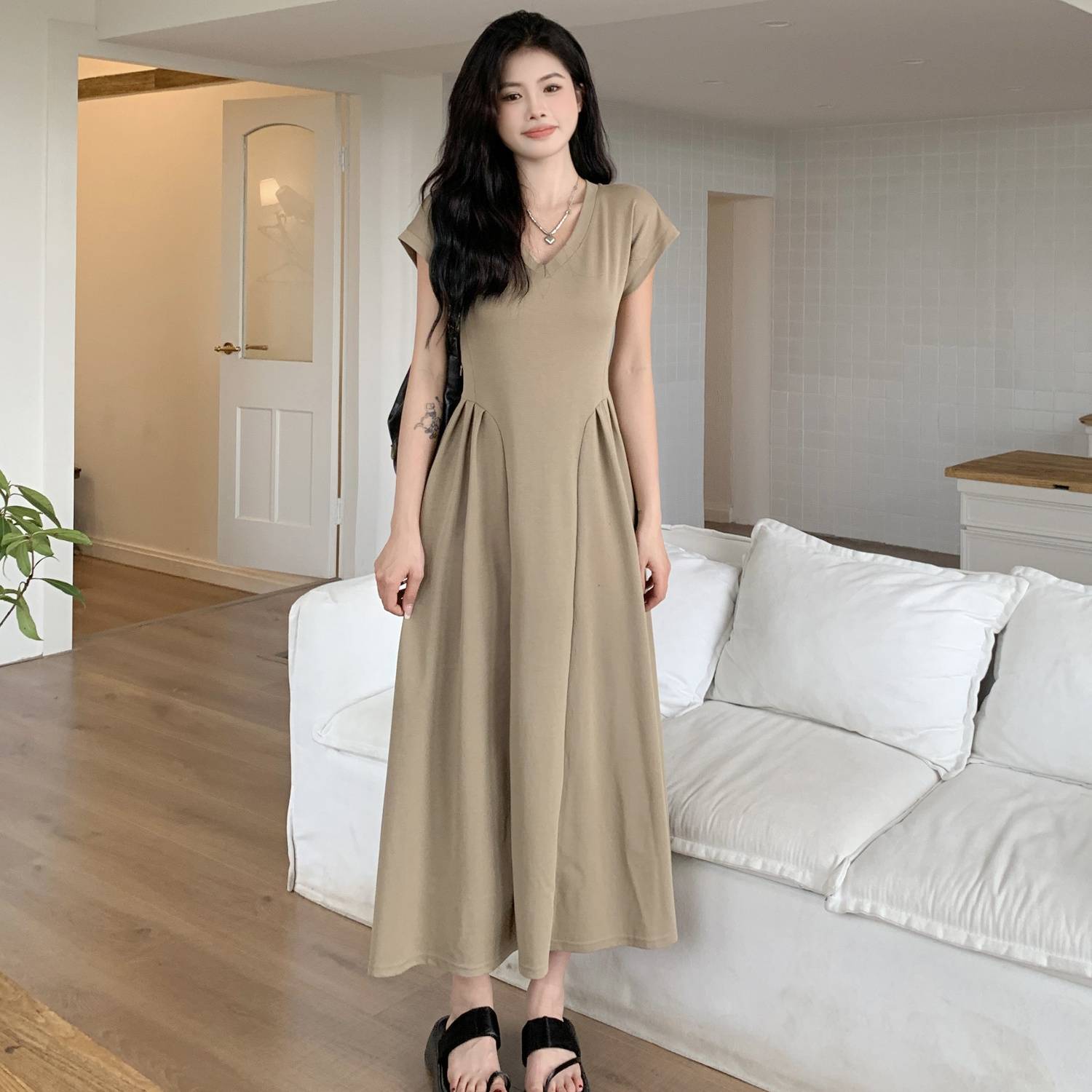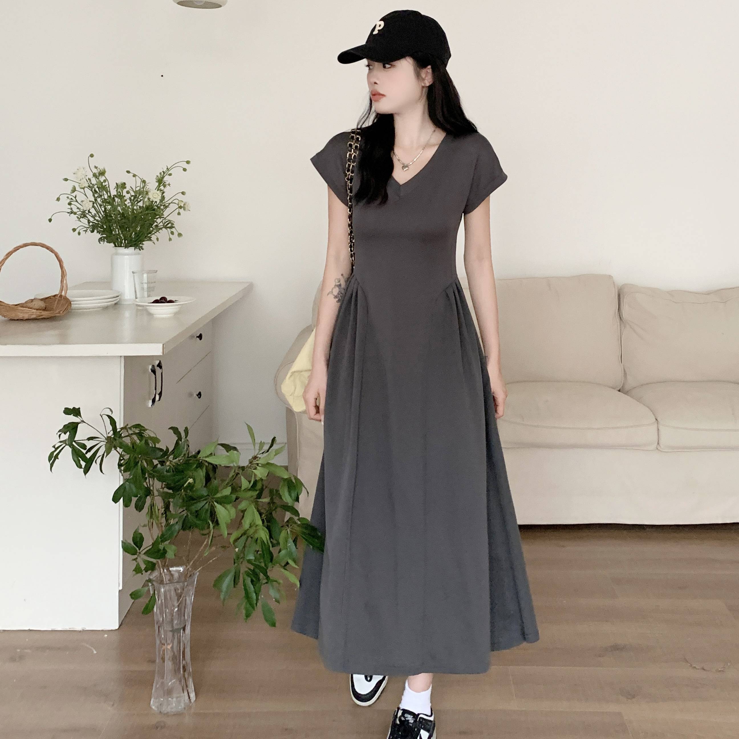 ワンピース ロングワンピース マキシワンピース マキシ丈 ロング カジュアル 切り替え レディース ミモレ丈 きれいめ ワンピ カジュアル 半袖 バイカラー 大きいサイズ ゆったり 体型カバー 春 夏