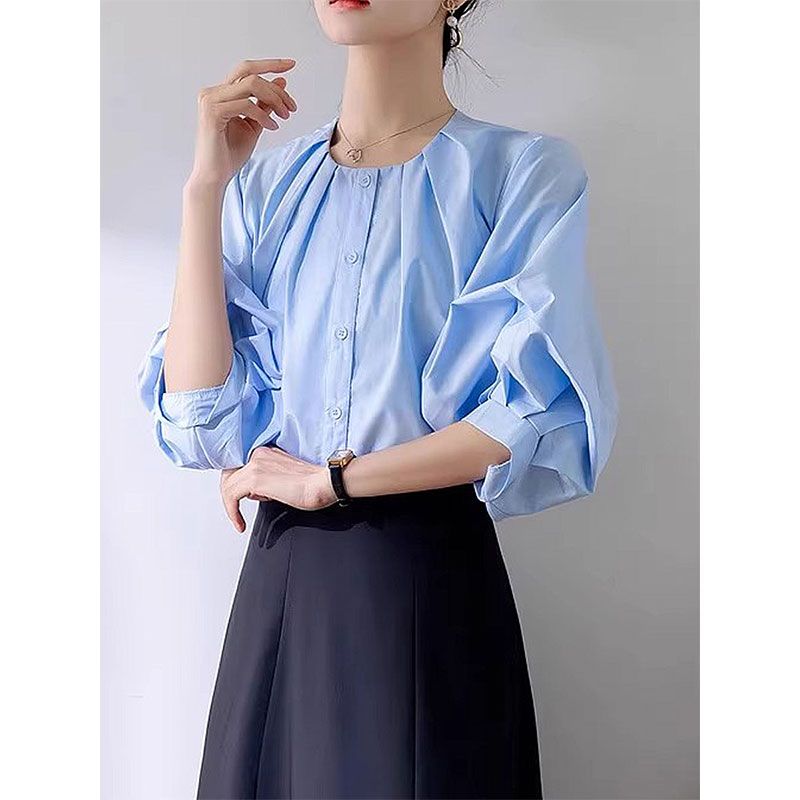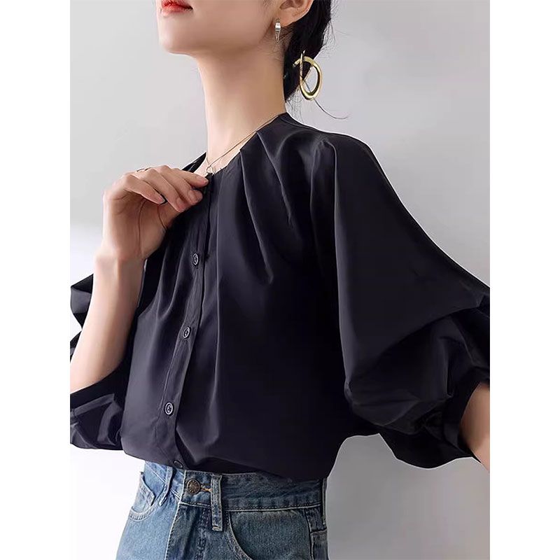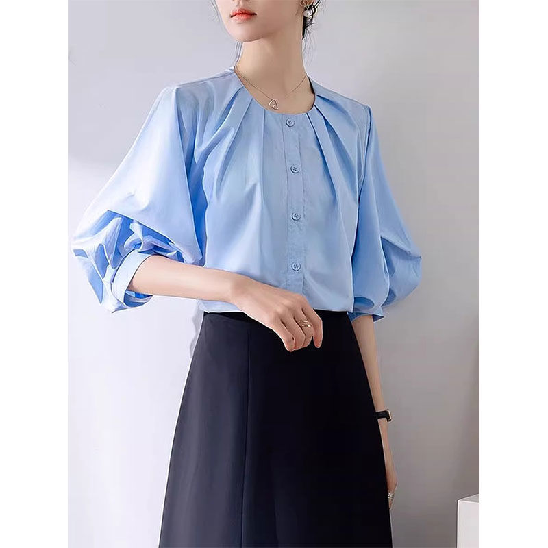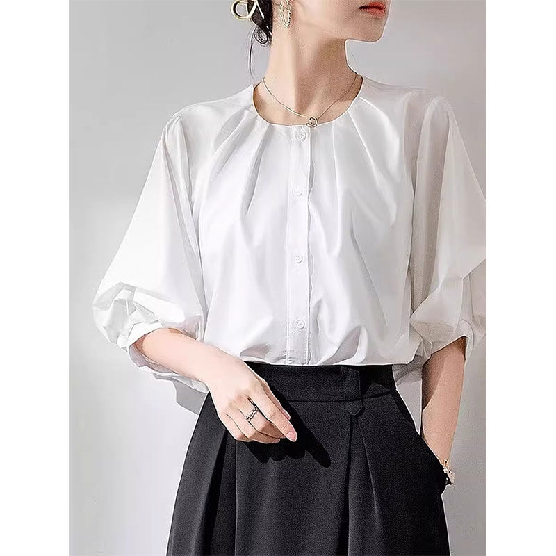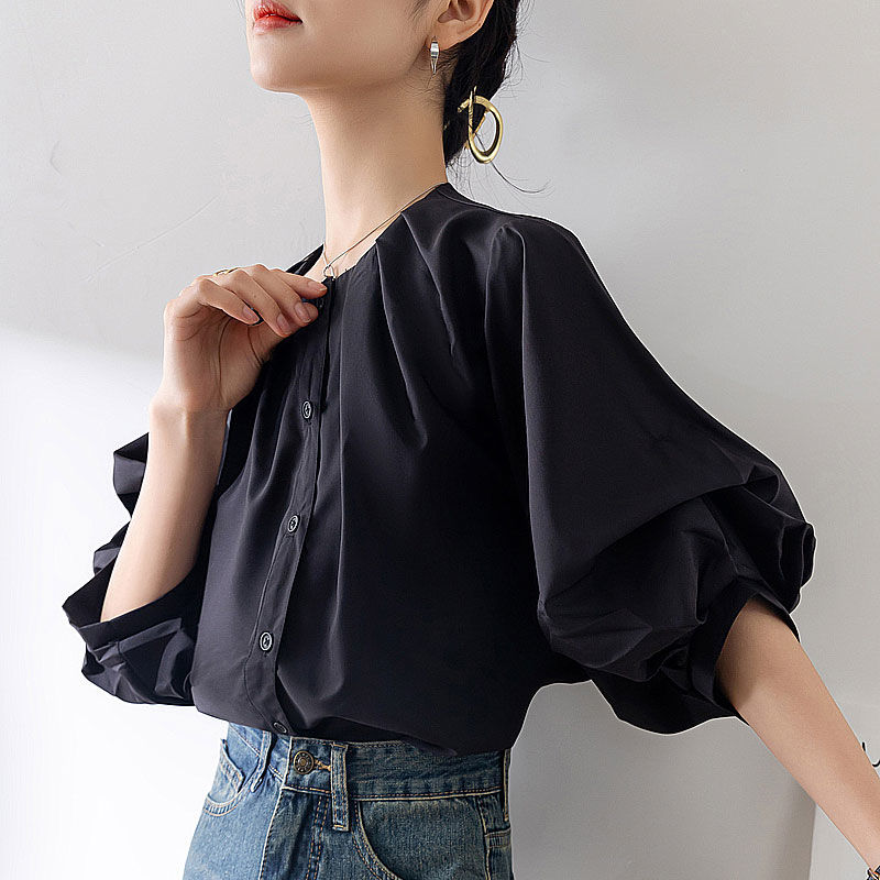 シャツ ブラウス パフスリーブ 5分袖