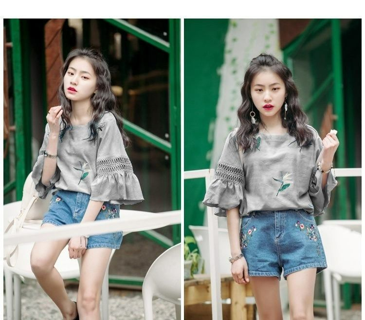 デニムパンツ ビジュー付き