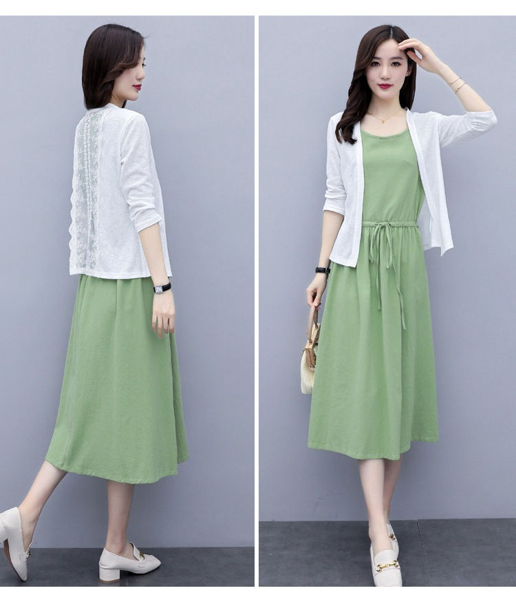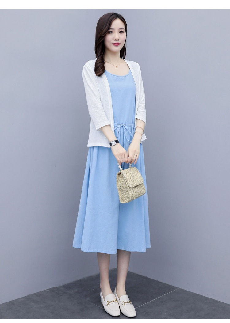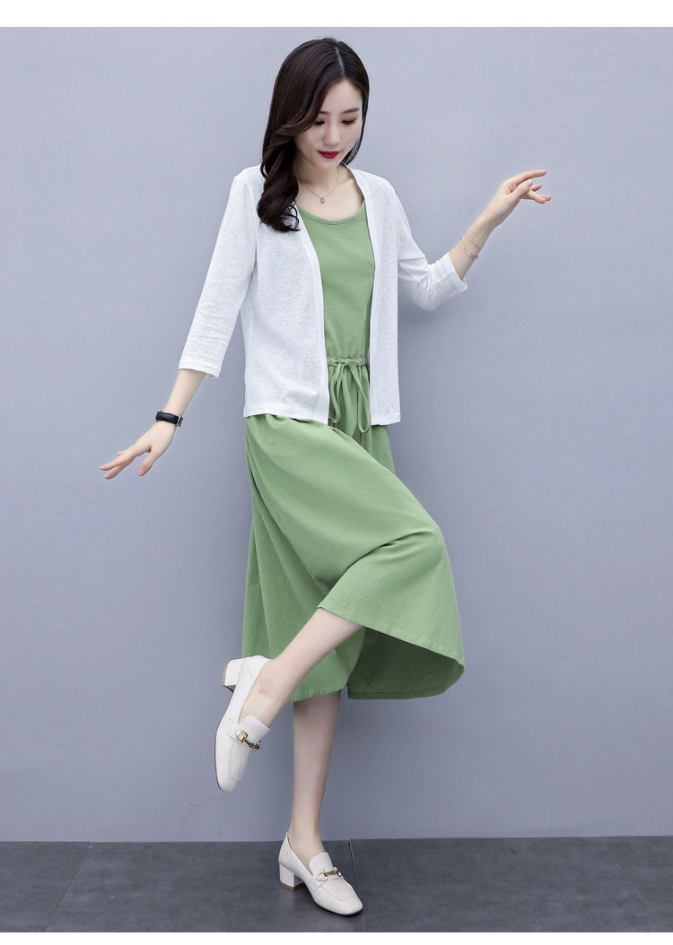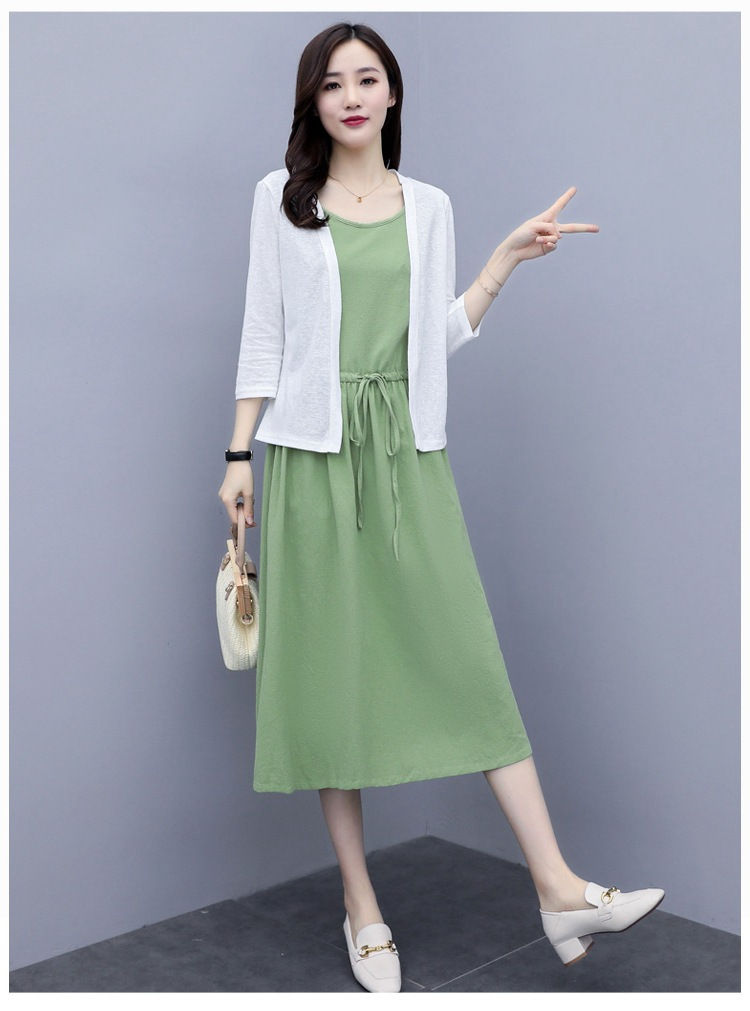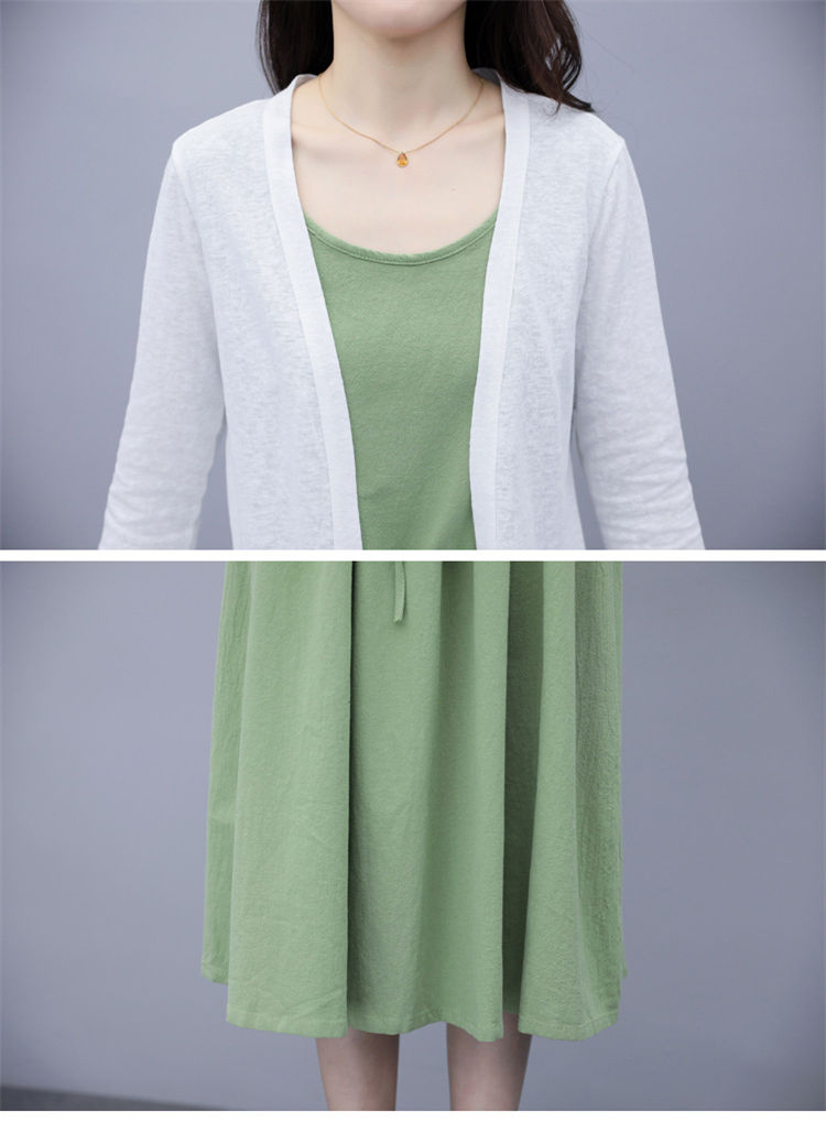 二点セット ワンピース ノースリーブ コート レデイース 母の日 優雅 リネンワンピース リネン 無地 夏秋 お出かけ
