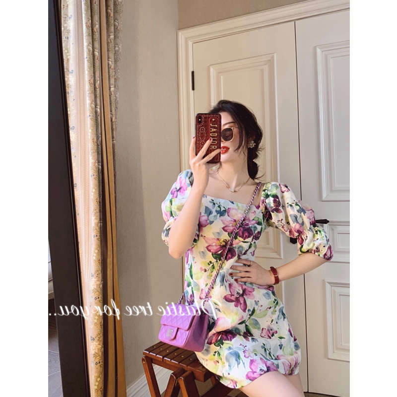 タイトワンピ パフスリーブ 五分袖 ス