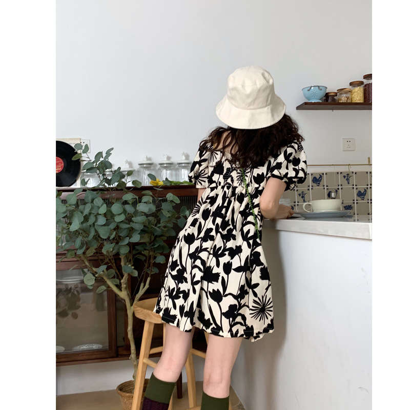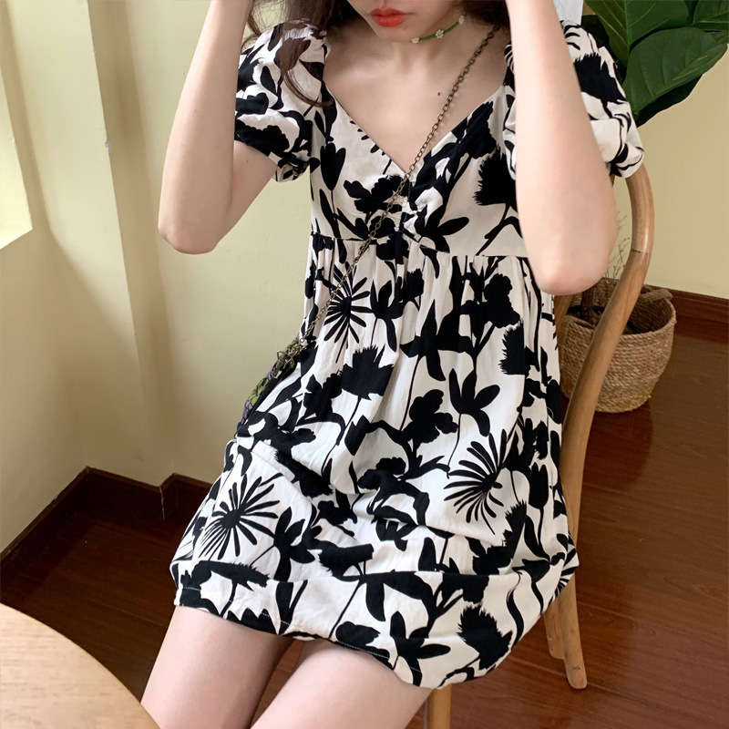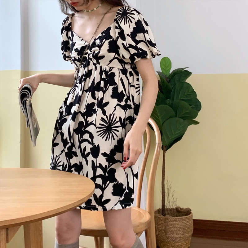 夏ワンピース 半袖 ブラック ホワイト